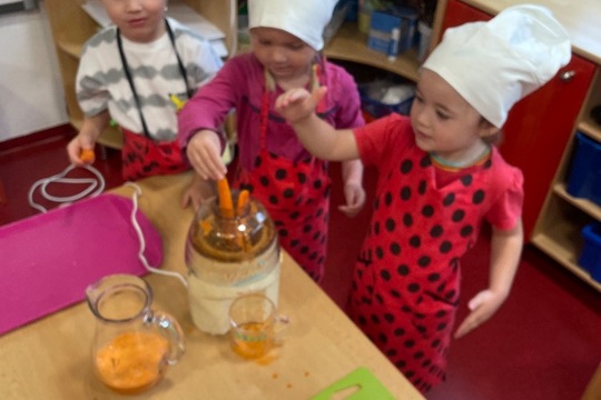 17. 01. 2017Děti od Broučků zjišťovaly, jak dostat šťávu ze zeleniny a jakou barvu má. Za pomoci odšťavňovače zjistily, že jakou barvu má zelenina taková je i šťáva. Kouzelné...