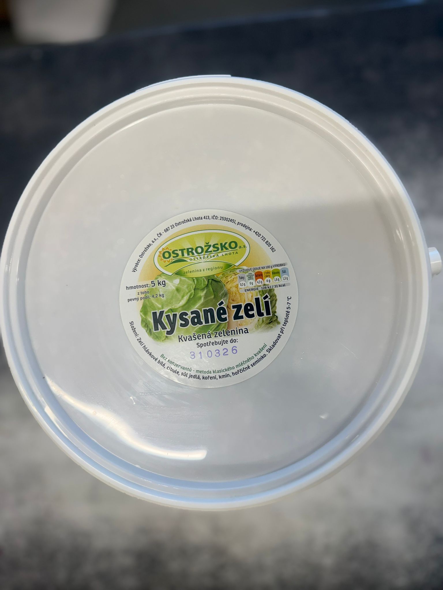 Složení: Zelí hlávkové bílé, cibule, sůl jedlá, koření, kmín, hořčičné semínko