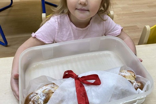 Děti u nás ve školce každoročně pečou. Pečení cukroví jim jde od ruky . Letos zkusily upéct i vánočku, která se jim moc povedla.