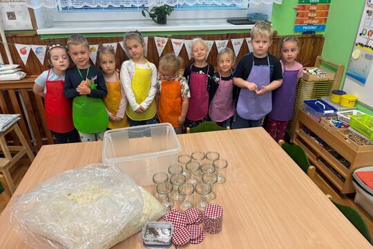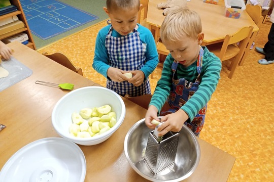 Děti ze Žlutého motýlku si upekly štrůdl z domácích jablíček donesených od rodičů.