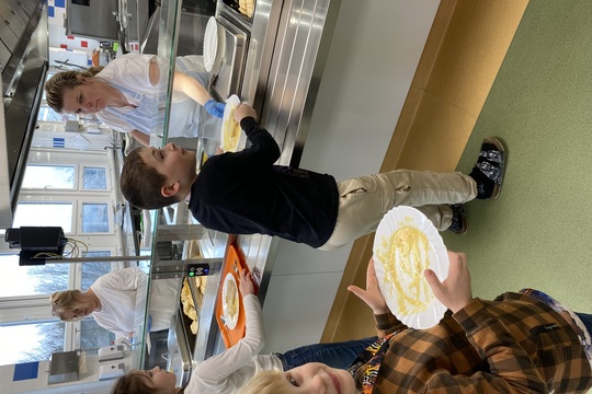 Při obědě si děti mohou vybrat ze dvou příloh a samy si rozhodují, kolik si naloží.