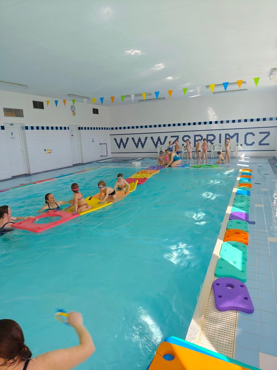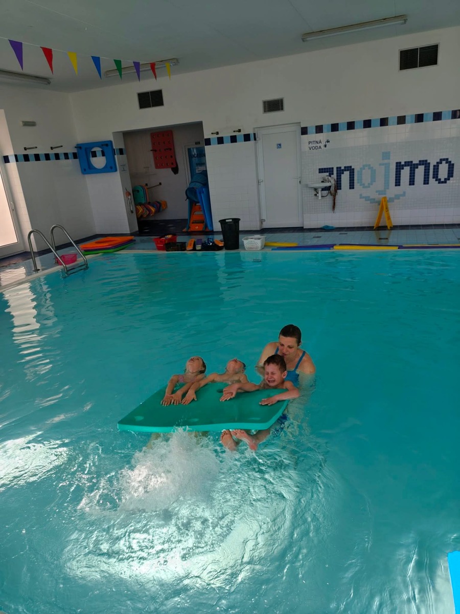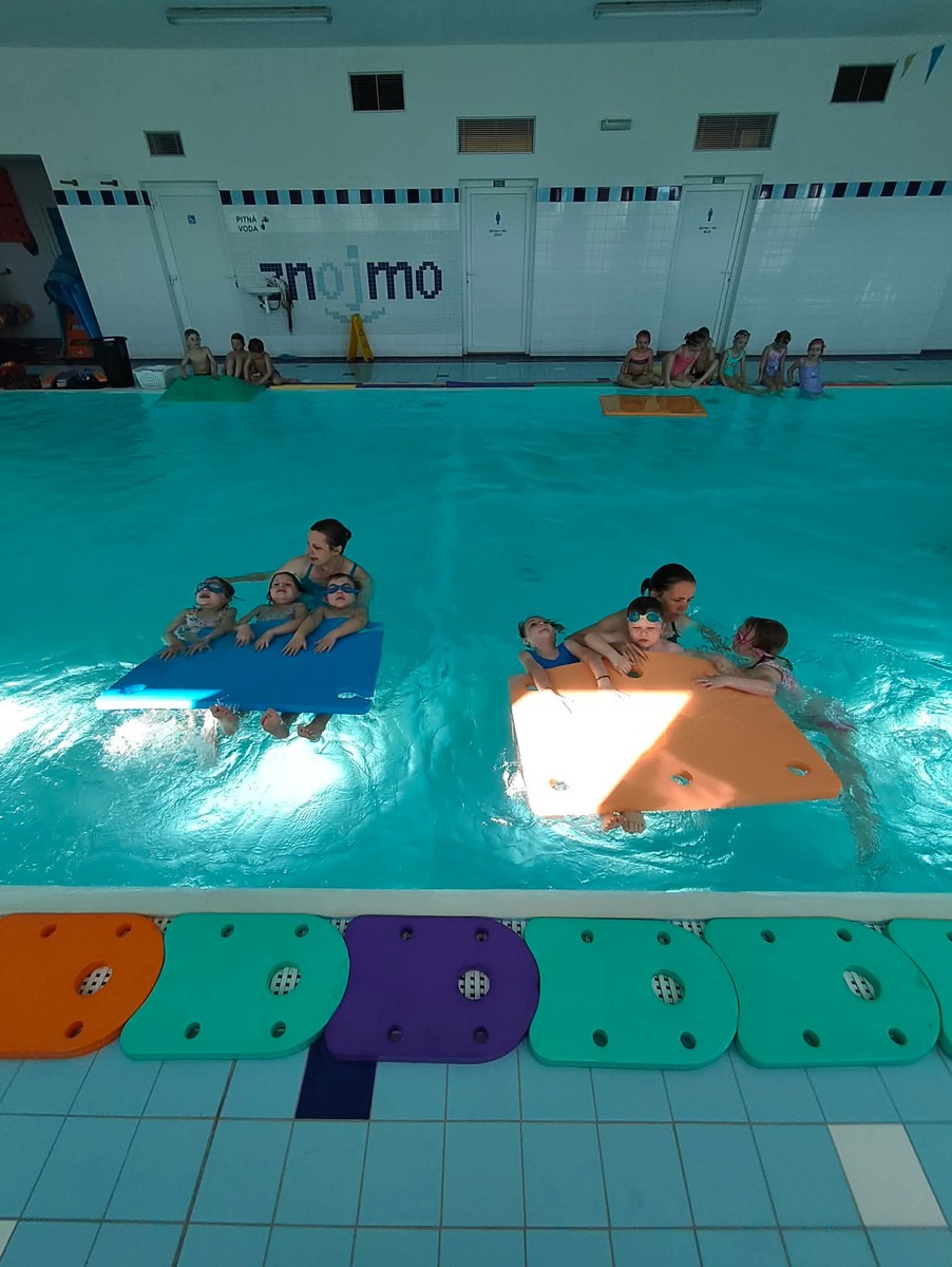 Minulý týden jsme s dětmi absolvovali první lekci plavání. Děti se seznámily s prostředím bazénu, s paní instruktorkou a postupně si zvykaly na vodu.