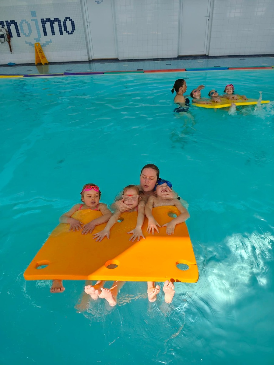 Vyzkoušely si první jednoduché pohyby ve vodě a nechyběly ani hravé aktivity, které jim pomohly překonat počáteční obavy. Všichni byli moc šikovní a lekci si užili. ????