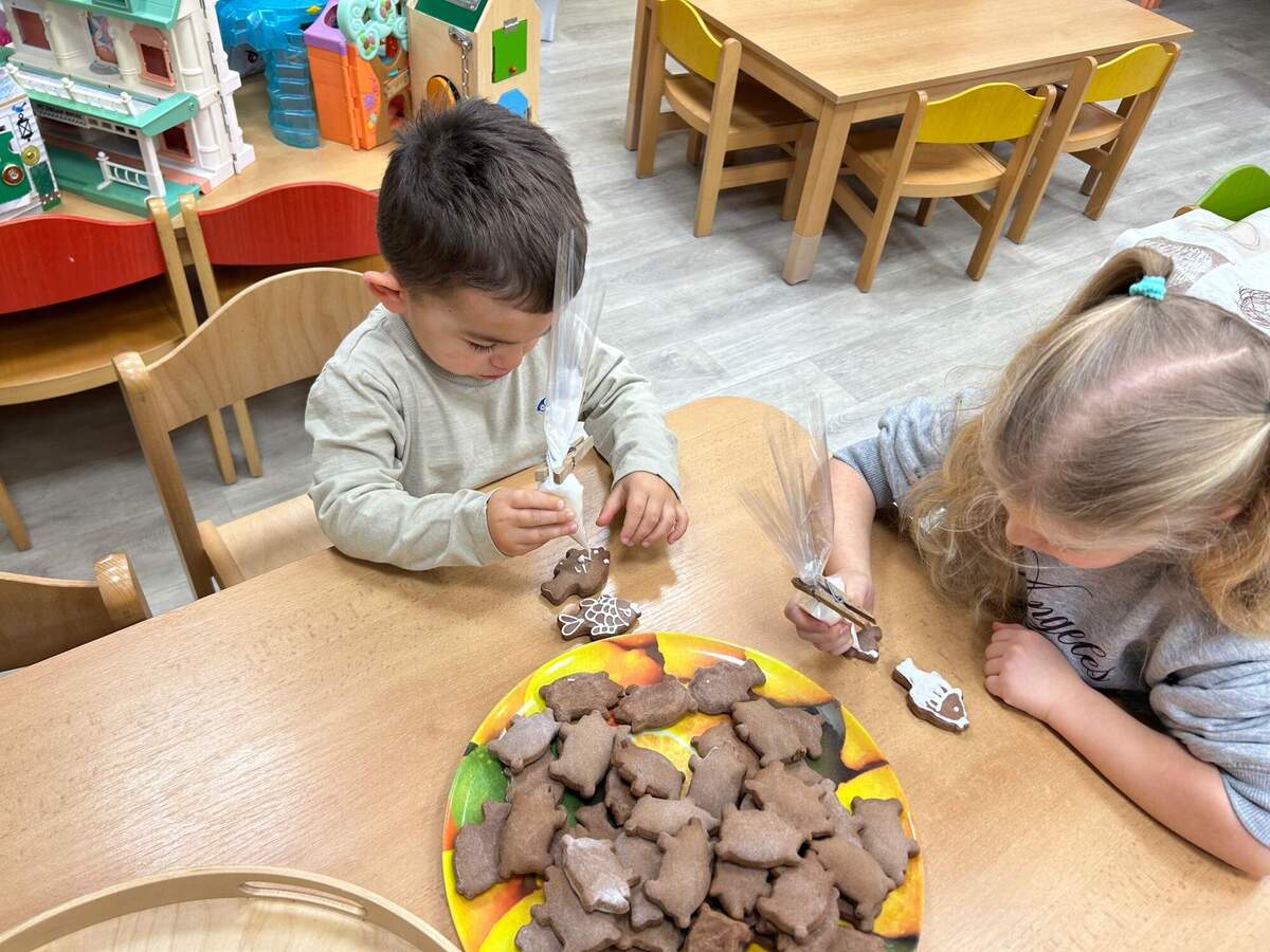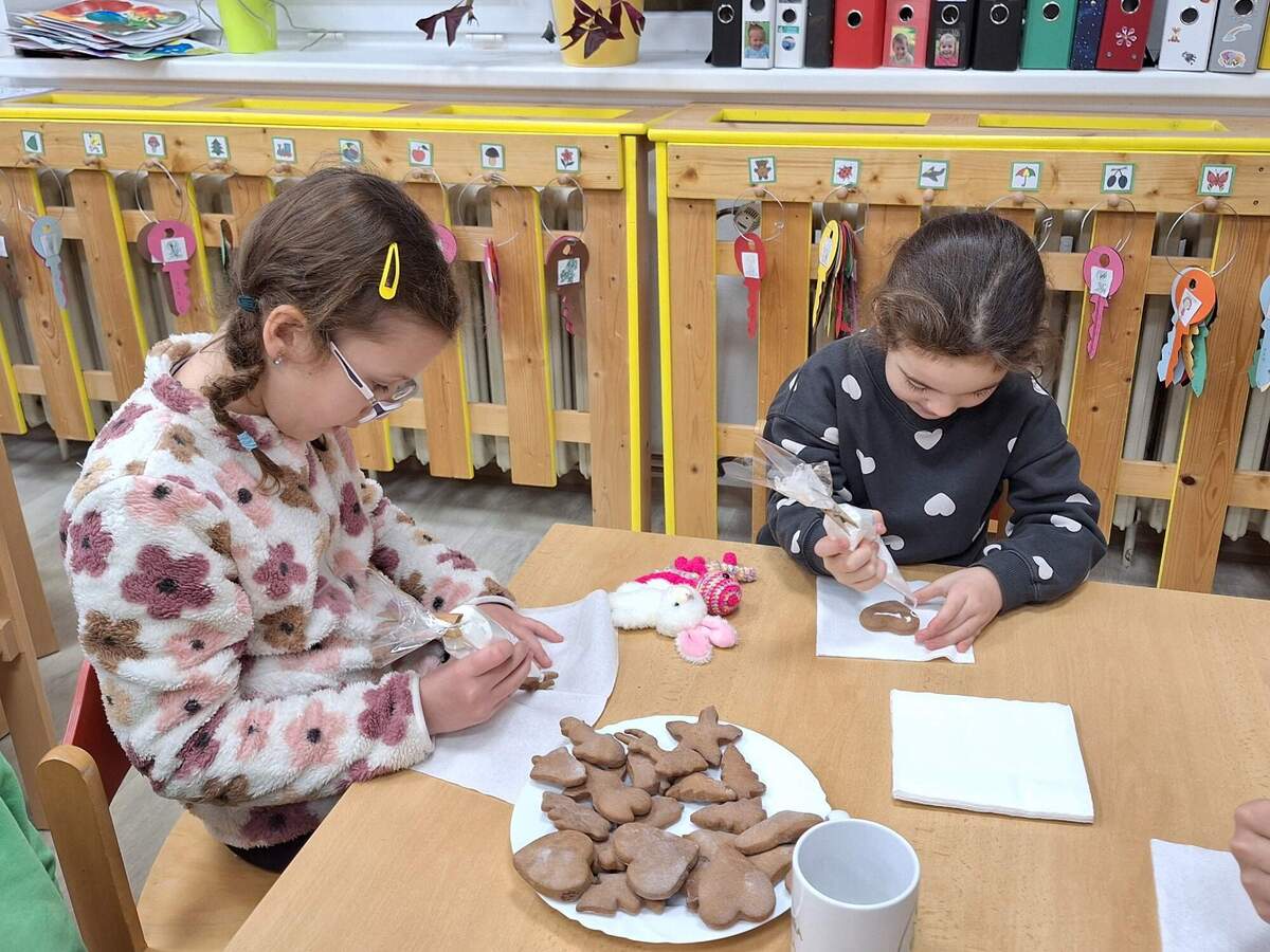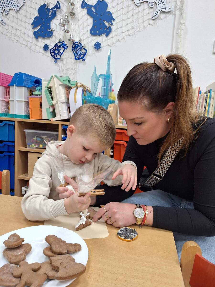 Vše bylo vánočně vyzdobeno, aktivity a tvoření ve třídách byly nápadité. Každý si mohl vyrobit něco pro radost. S dětmi jsme upekli perníčky, které si každý, kdo přišel, mohl vyzdobit. Pozvali jsme také naše místní malé obchodníky, kteří měli možnost prodat své zboží. Děti i rodiče s námi strávili na třídách chvilky plné pohody. Také strom pro splněná přání byl plný tajných snů. Další upečené perníčky naše děti ozdobily a při jedné dopolední procházce do města je rozdávaly seniorům, které potkávaly. Byly to opravdu milé chvíle plné úsměvů. Zkrátka jsem dělali radost. Přejeme vám všem hezké dny, šťastné vánoční svátky a pevné zdraví.
