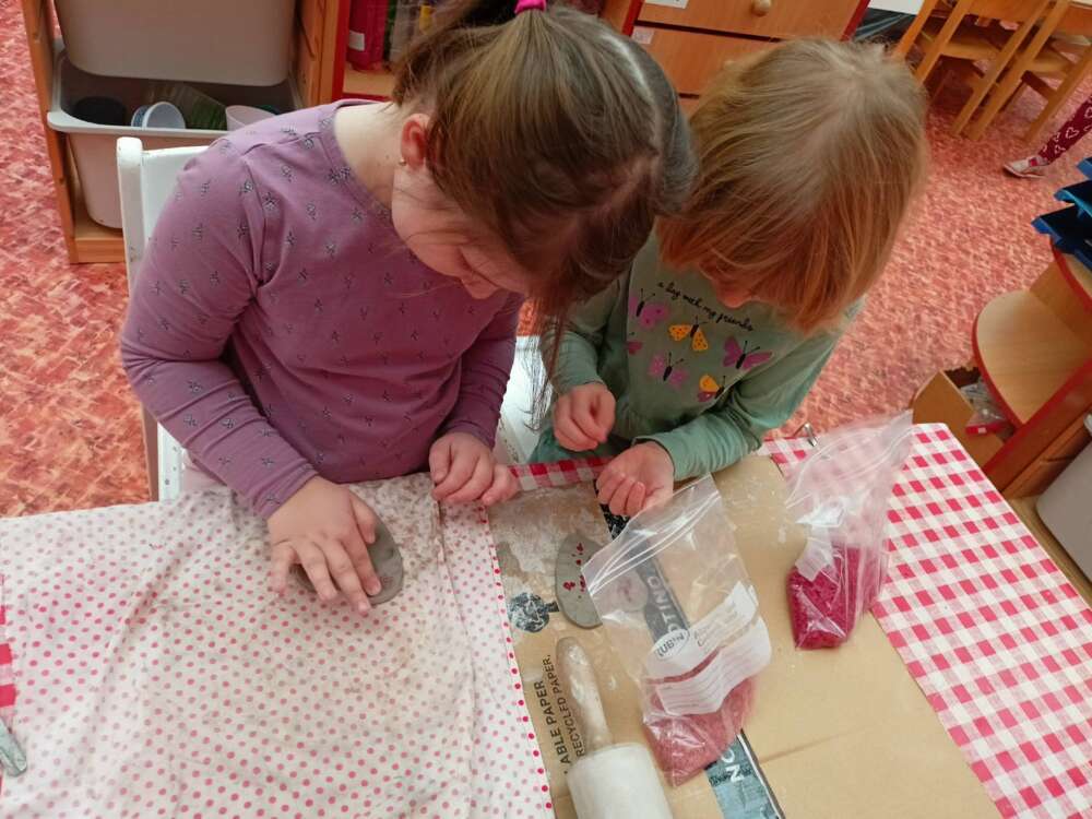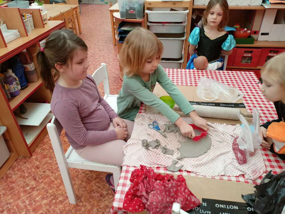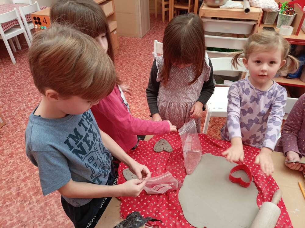 Děti od Myšek, si vyzkoušely vyrobit jedlé ozdoby ptáčkům, a děti od Krtečků se začínají připravovat na projekt Srdce s láskou darované, do kterého se, jako loni, zapojí celá naše školka. U Medvídků se nestíháme nudit :-)