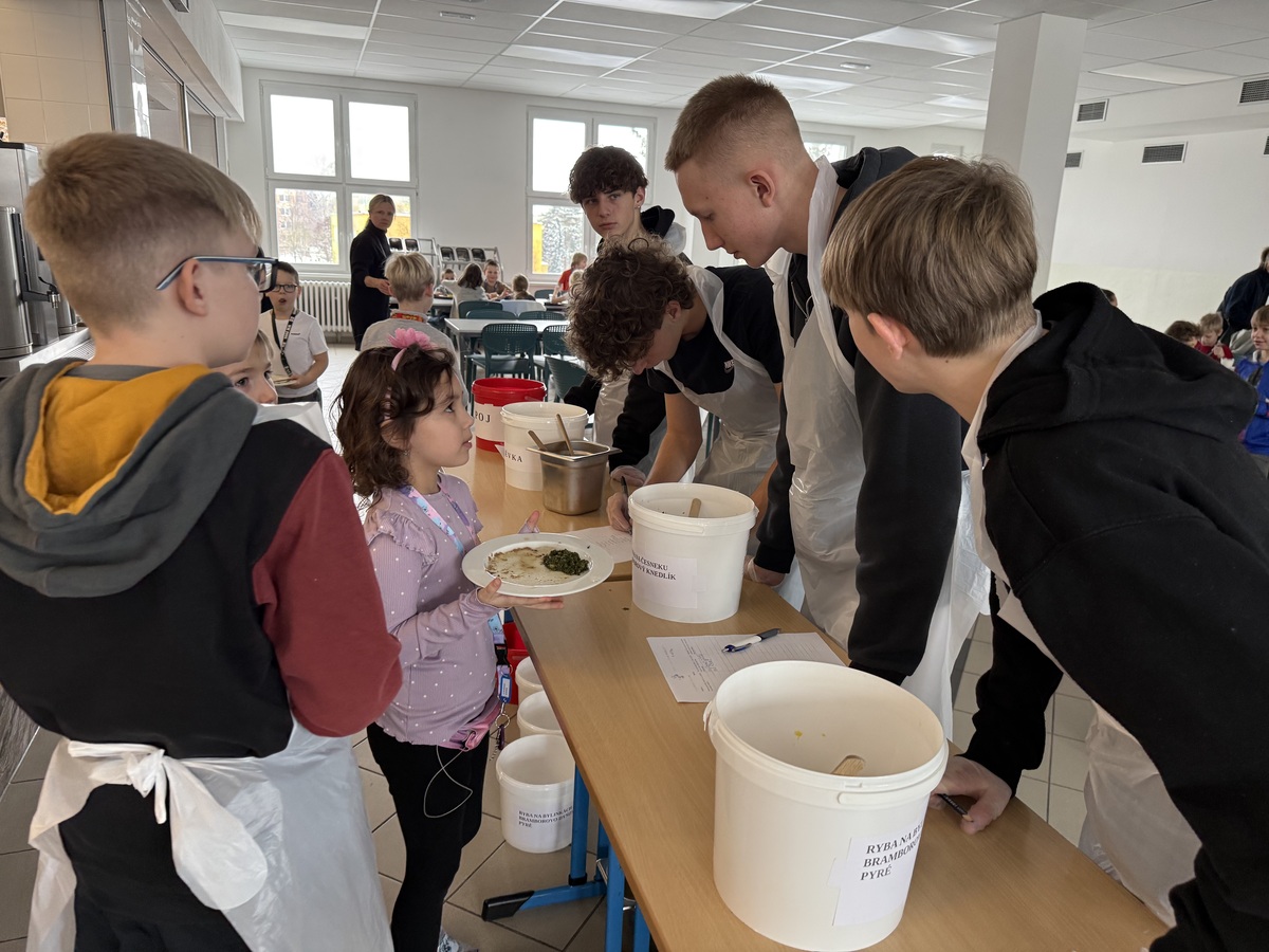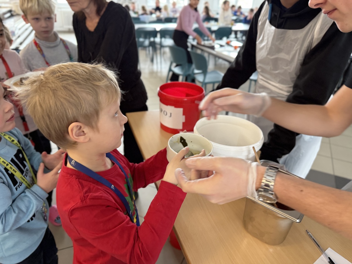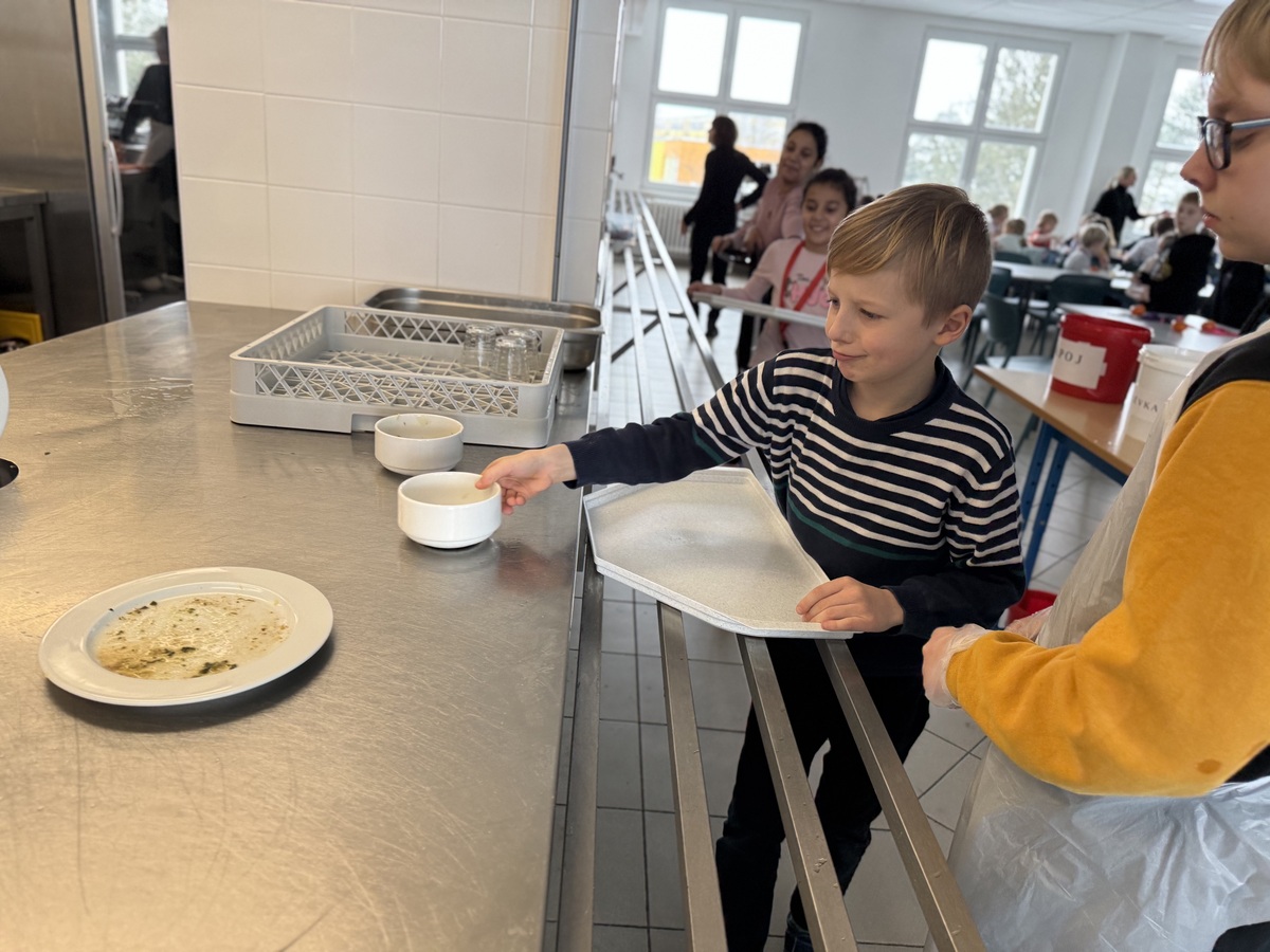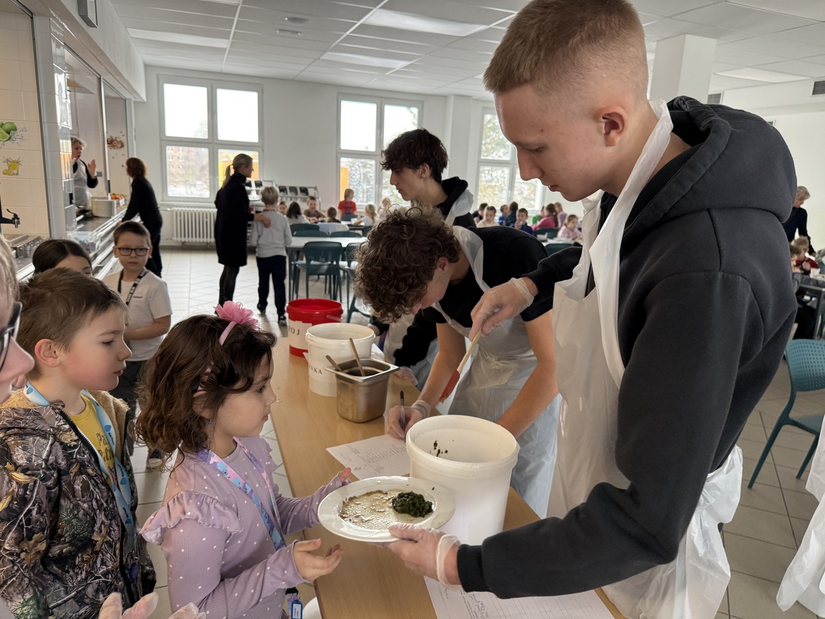 Dnes na naší škole proběhl audit plýtvání jídlem, který se zaměřil na to, kolik jídla skutečně končí v odpadu – a hlavně proč. Do akce se zapojili žáci vyšších ročníků, kteří společně s mladšími spolužáky třídili zbytky jídel do předem připravených kyblíků.