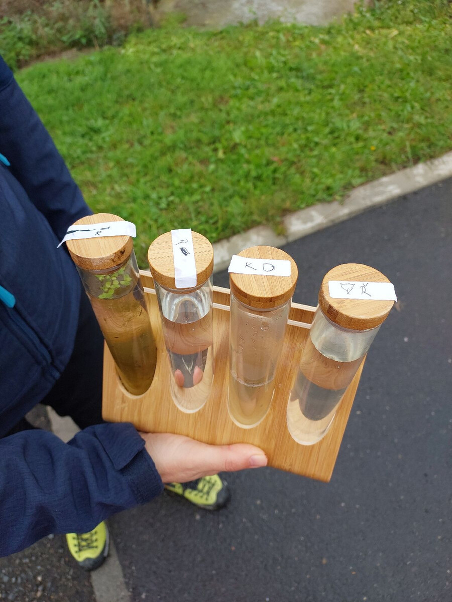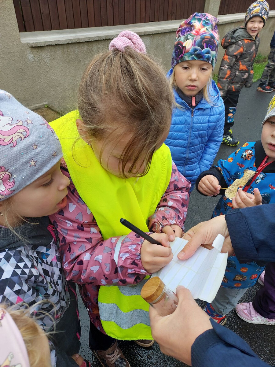 Tento týden jsme se vydali na malou výpravu do okolí, abychom prozkoumali vodu kolem nás. Děti si s sebou vzaly zkumavky a sbíraly vzorky vody z různých míst – z řeky, potoka, rybníka, kaluže i z barelu. Každý vzorek si pečlivě označily a později jsme je společně porovnávali ve třídě.