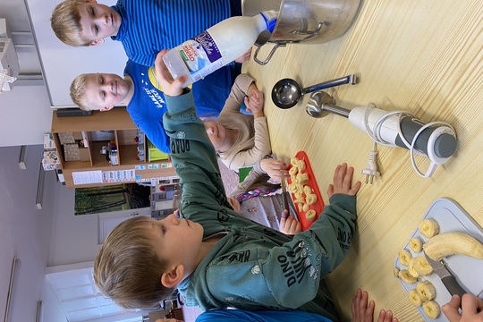 V naší MŠ nám děti nosí na narozeniny různé ovoce nebo zeleninu. Tentokrát jsme měli banány- děti vymýšlely, co by si z banánů mohly udělat. Vyhrál banánový koktejl.