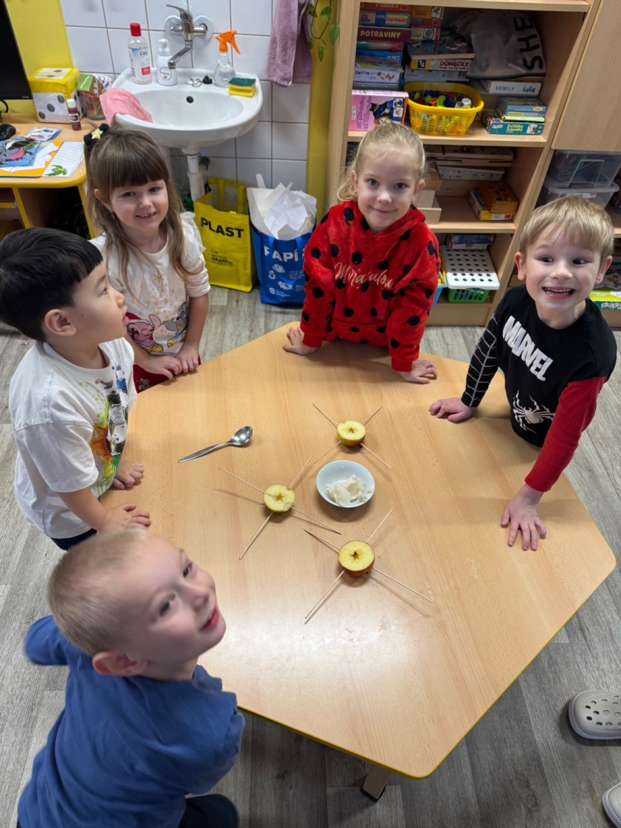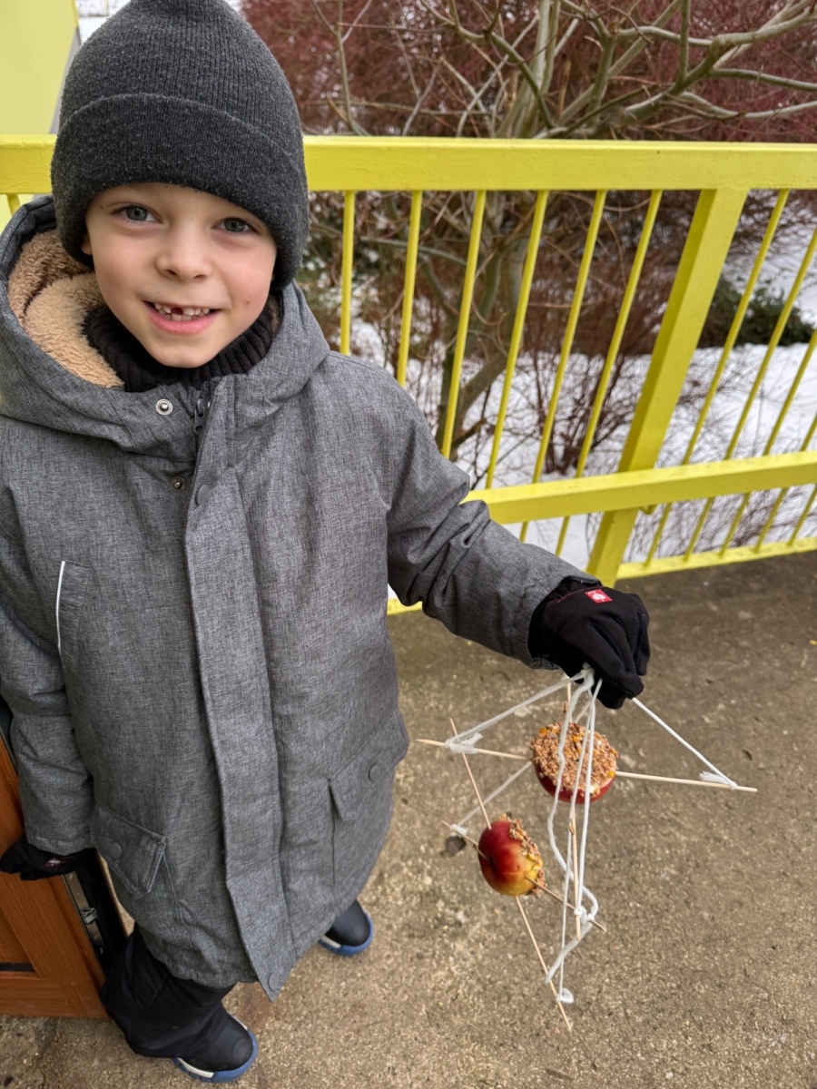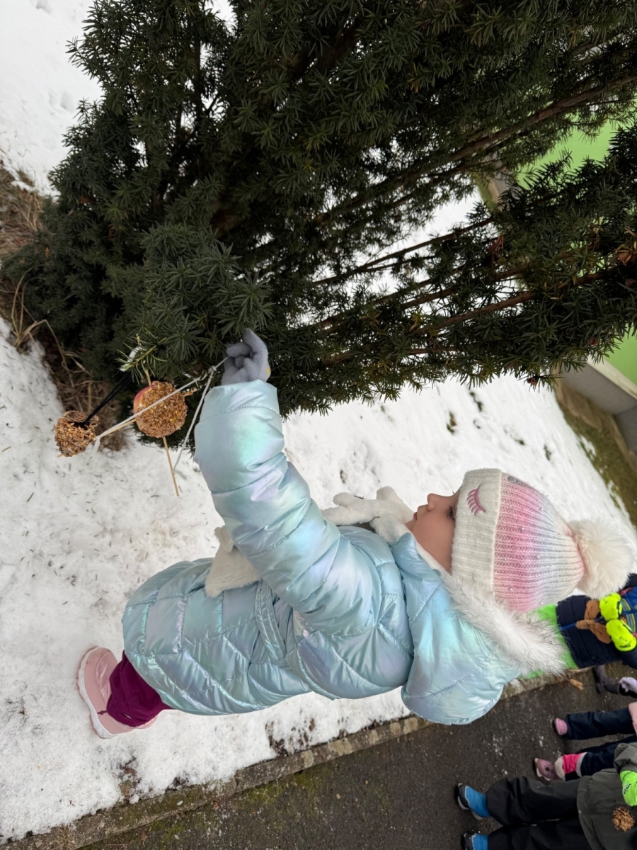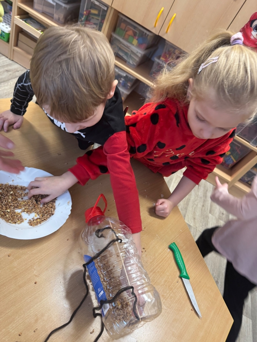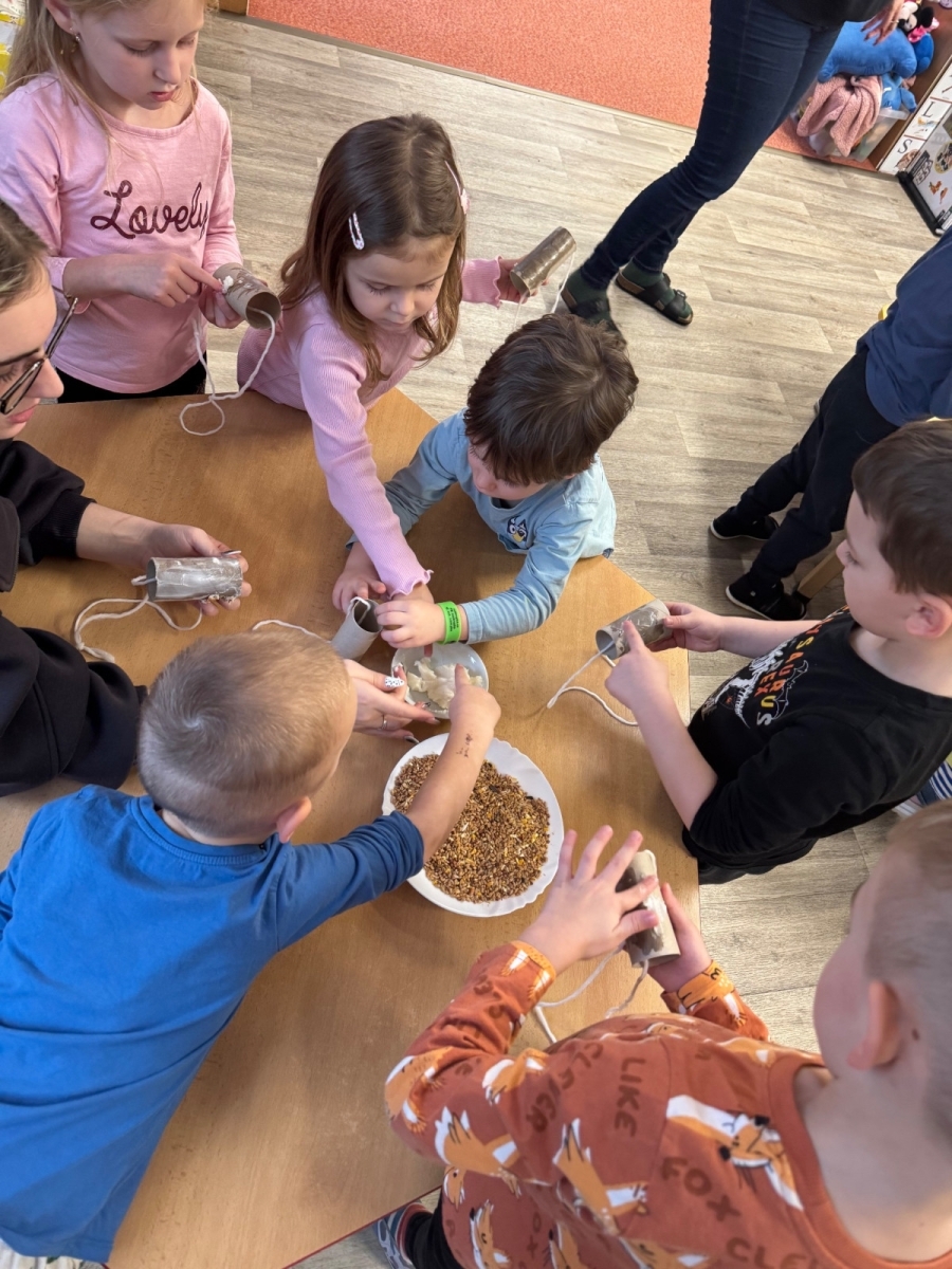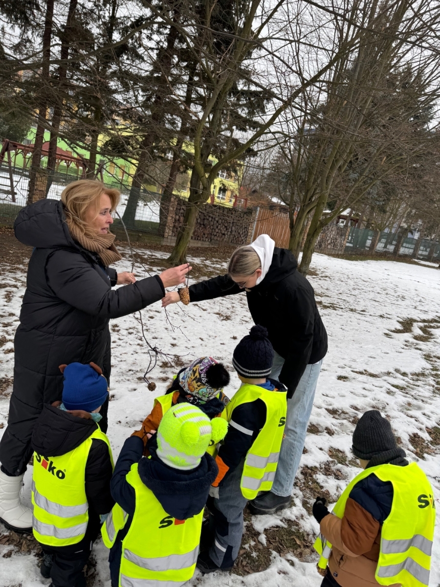 Dnes se třída Motýlků a Berušek společně věnovala výrobě krmítek pro ptáčky. Děti pracovaly na několika stanovištích – vyráběly krmítka z ruliček, jablíčka se semínky, krmení ze šišek a krmítko z PET lahve. Následně jsme se vydali na procházku, kde děti své výrobky umístily venku do přírody. Děti si činnost moc užily a s nadšením pozorovaly, jak mohou ptáčkům v zimě pomoci. MŠ Sluníčko myslí na zvířátka i v zimě.