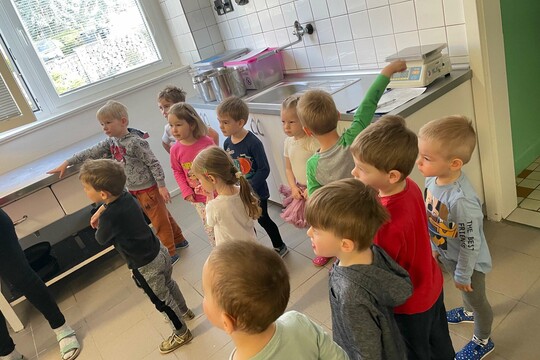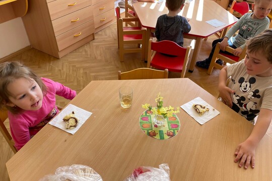 Děti ze třídy berušek si dnes upekly beránka. Byly se s paní učitelkou podívat i v kuchyni, jak se beránek peče a moc se jim líbilo, že mohly nahlédnout do trouby. Poté si ho po obědě vychutnaly.