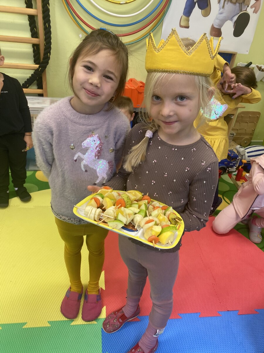 Rodiče nám ve velkém nosí do školky ovoce, aby děti mohly zdravě mlsat. Dnes Týnečka přinesla ovoce v BIO kvalitě. Přáním maminky a Týnečky bylo, aby se z ovoce udělaly špízy. Paní učitelka s paní asistentkou a dětmi se hned pustili do práce. Děti loupaly banány, umývaly ovoce a společně pod dohledem dospělých krájely ovoce a následně napichovaly na špejly. V dnešní den také slavila narozeniny Laurinka a tak jí Týnečka uělala radost zdravým mlsáním, které si děti udělaly sami. Jelikož všeho bylo hodně, tak se rozdávalo i u svačinky. Odpad z ovoce Týnečka odnesla vyhodit na kompost na školní zahradě.