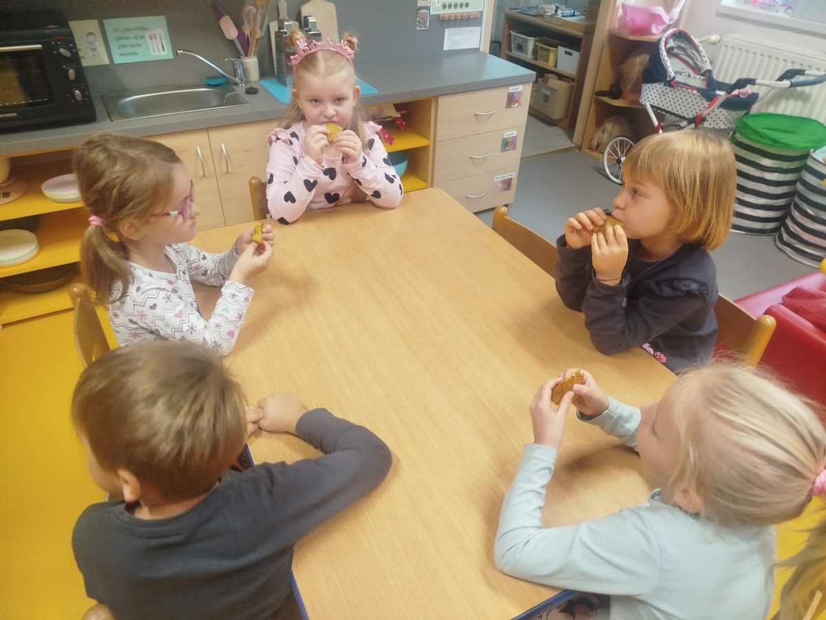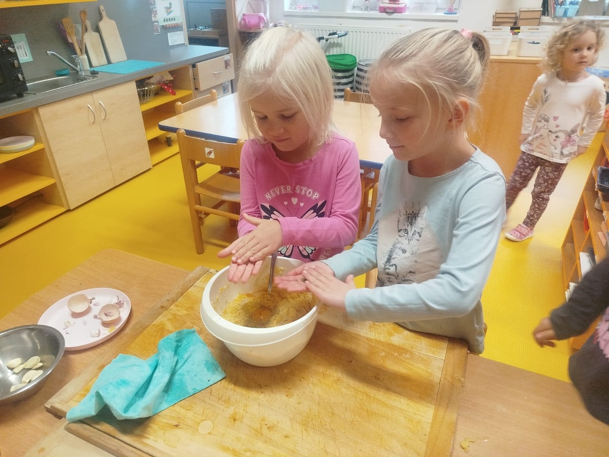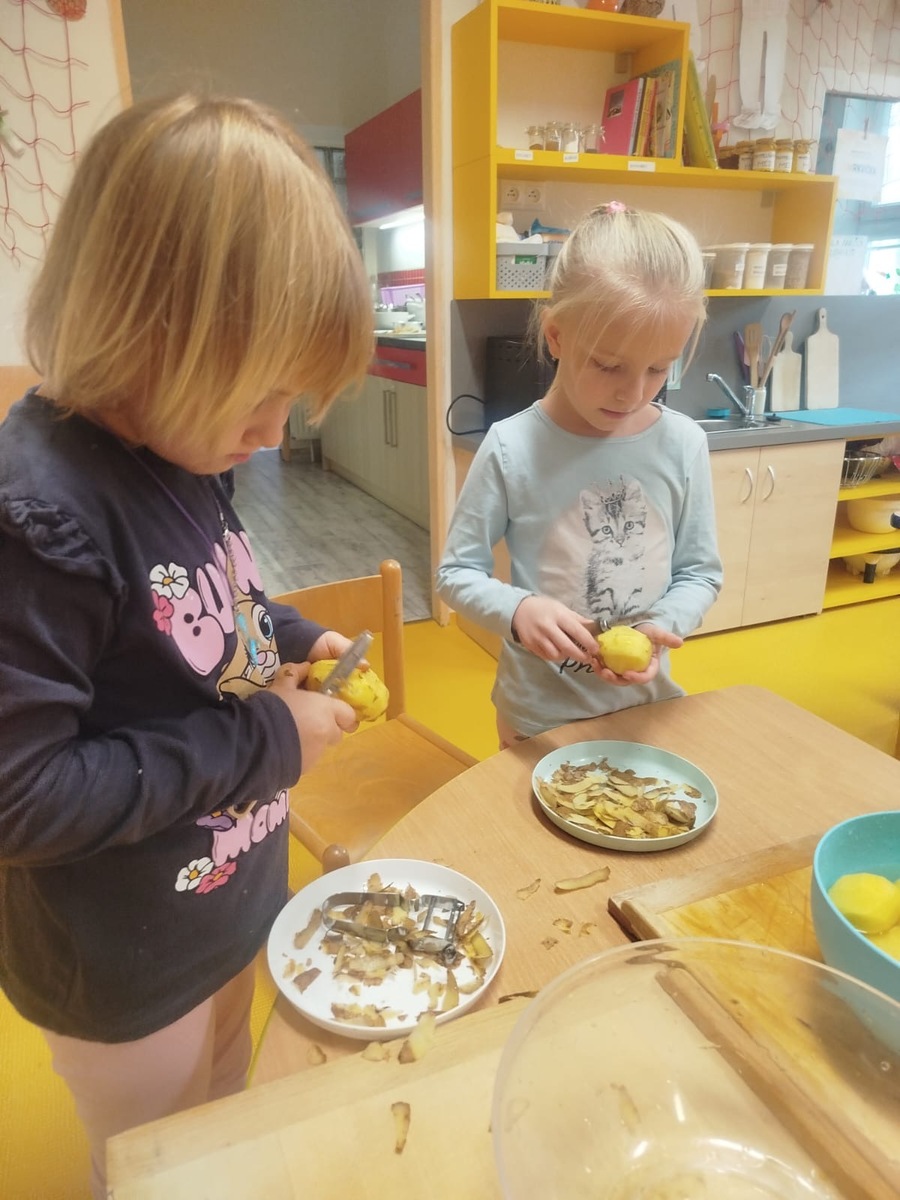 Dnes jsme si ve třídě užili voňavé dopoledne plné vaření! Děti si samy připravovaly malé bramboráčky z brambor, které jsme společně nasbírali na naší školní zahradě. Nejprve si brambory pečlivě očistily, oloupaly a nastrouhaly. Poté přidaly vajíčko, mouku, špetku soli a podle chuti i trochu majoránky a česneku.