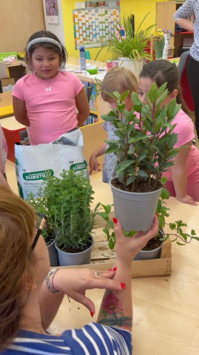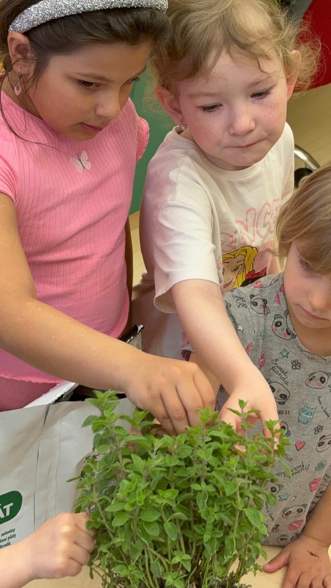 Dnes přišla řada na bylinky a semínka rajčátek, která nám přišla od našich kamarádů ze Znojma. Ještě jednou děkujeme. Děti dnes poznávaly bylinky chuti, zrakem i čichem. Zároveň nám říďová řekla, jakou bylinku doma k čemu používá a kuchařka Nikolka nám pověděla své tajemství koření ve školní kuchyni. Sadba i vaření v jedné činnosti.