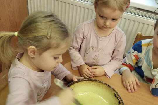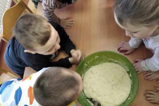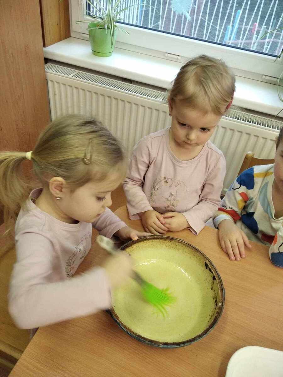 Dnešní den se v naší MŠ všechno připravovvalo na pečení chleba, který chceme zítra nabídnout našim rodičům na společné snídani. Děti si nejprve povídaly o surovinách, které jsou potřeba na výrobu chleba. Potom se začalo se samotným hnětením připravených ingrediencí. Po vykynutí se bochánek upekl, jeho vůně se linula do širokého okolí. Již je vše připraveno na zítřek, tak se budeme těšit na hodncení rodičů.
