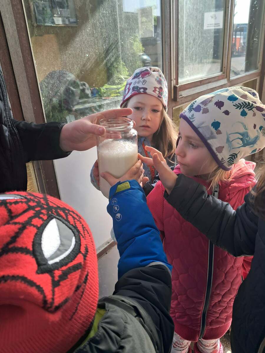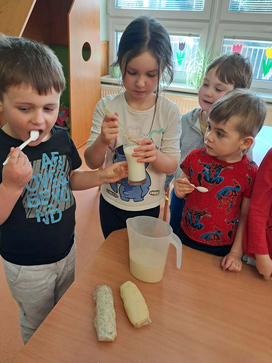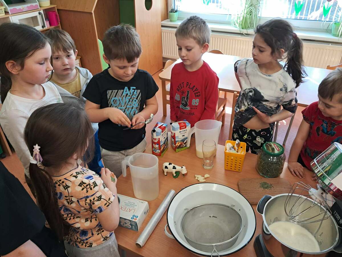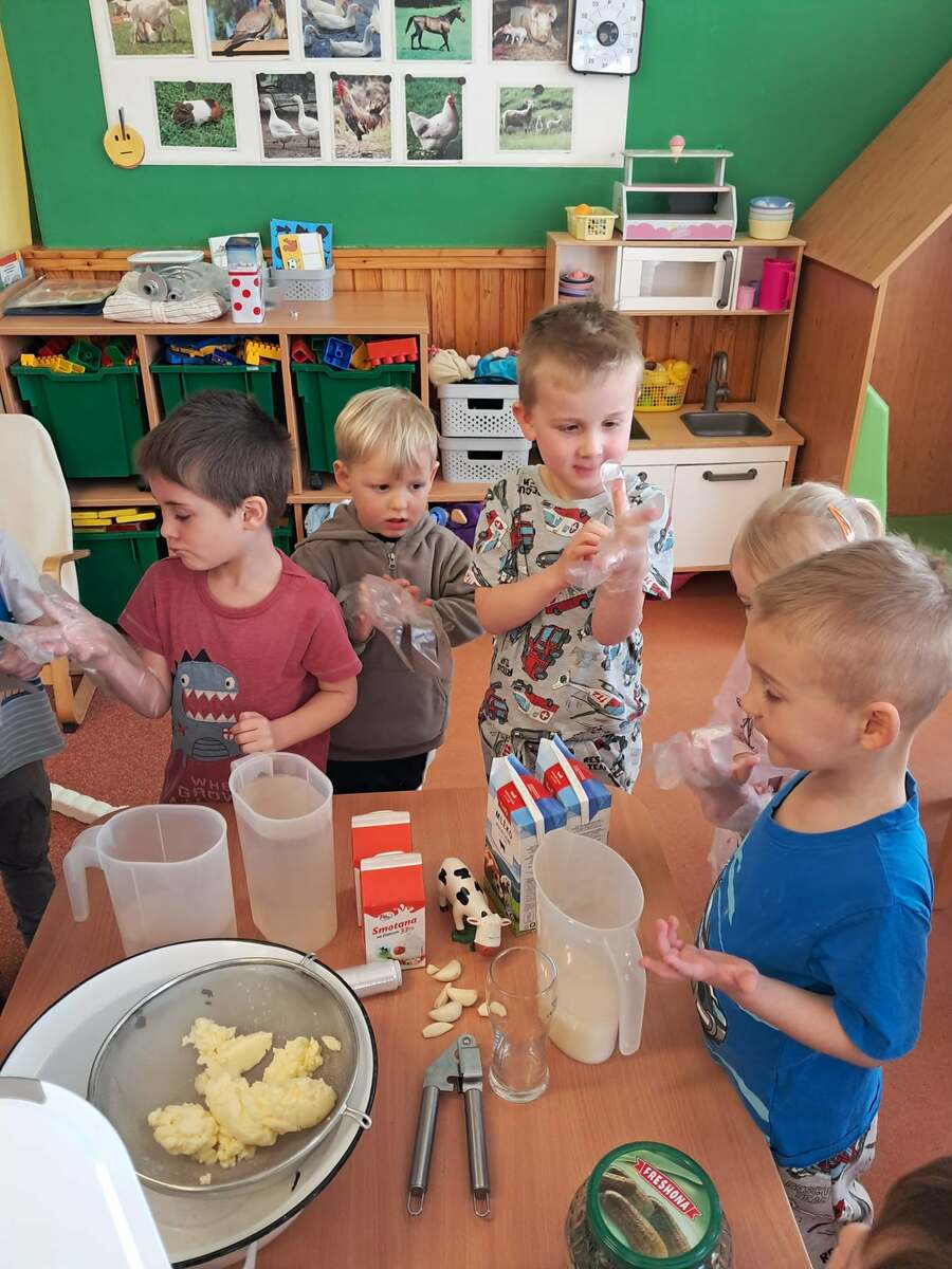 Cesta másla . Děti ve školce se dozvěděly, jak vzniká máslo. Nejprve kravička dává mléko , z mléka se oddělí smetana a ta se potom dlouho tluče, až vznikne máslo.Děti si povídaly, odkud jídlo pochází a jakou cestu musí urazit, než si ho dáme na chleba.