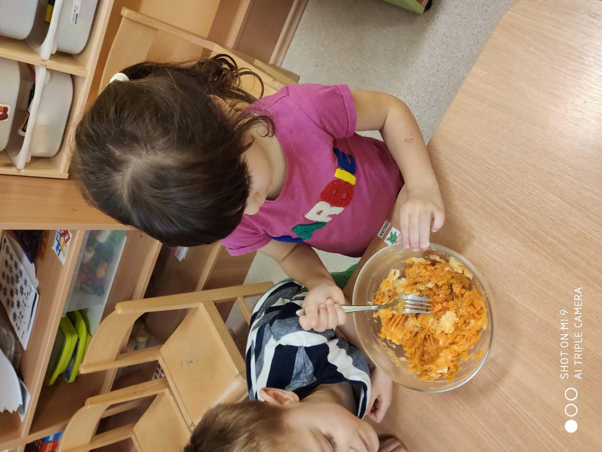 This cake was easy to make and the children enjoyed themselves. We started by scrubbing the sweet potato and cooking it in the microwave until it was finished, about 5 minutes. After, we smashed it with a banana until the mixture was liquid. This was the hard part because of how to mash the banana correctly. After, we added two eggs, and a tablespoon of olive oil. We only had olive oil but it could've used coconut oil too. After, we added our dry ingredients: cinnamon for taste, baking powder, and almond flour. They mixed until it was combined and then added it to the pan and baked for about 15 minutes. After letting it cool, the children ate it up like crazy! There was nothing left for the other children in the school. Enjoy!