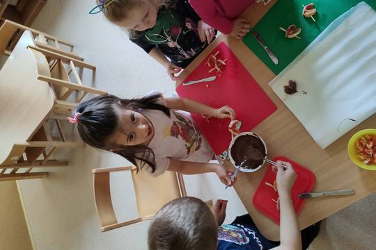 This week the cooking club dedicated their snacks to a Valentine's Day theme. Instead of doing something really unhealthy, we opted to do something sugary but more on the healthy side. We used pineapple and blood oranges for this particular snack. We started by cutting up small chunks of pineapple and peeling the blood oranges. After, we cut the blood oranges into halves and used toothpicks to stick two pieces together to make a heart shape. After all the fruits were made into hearts, we melted dark chocolate and dunked the fruit pieces into in, covering about halfway. After the chocolate hardened, we melted a bit of white chocolate and drizzled it over top the dark. We kept the fruit in the freezer for about a half hour before pulling them out to serve and eat. <3