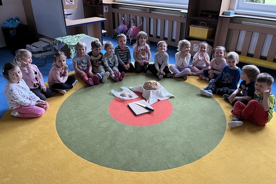 Ukázali jsme si, jaká je cesta od zrníčka obilí až k chlebu na svačinu. Zabředli jsme i do různých druhů obilí i mouky. Nesměl chybět poctivý domácí chléb, který nám upekly některé maminky.