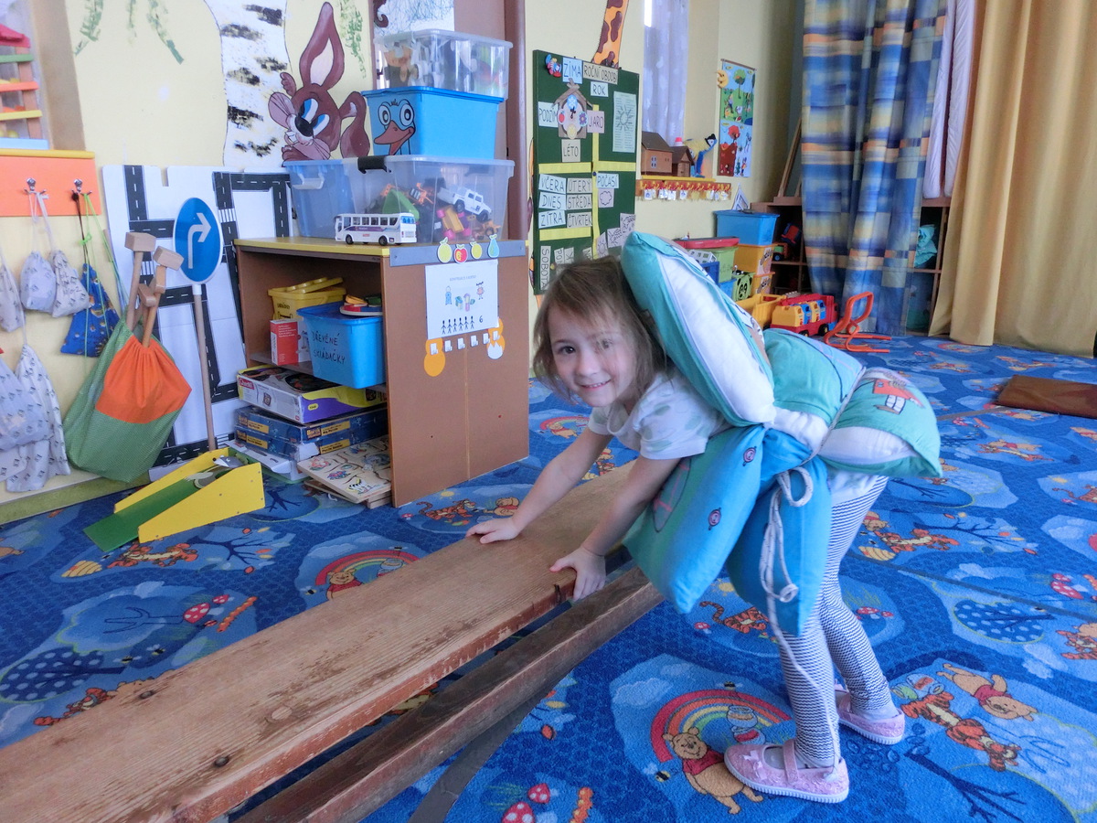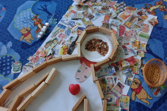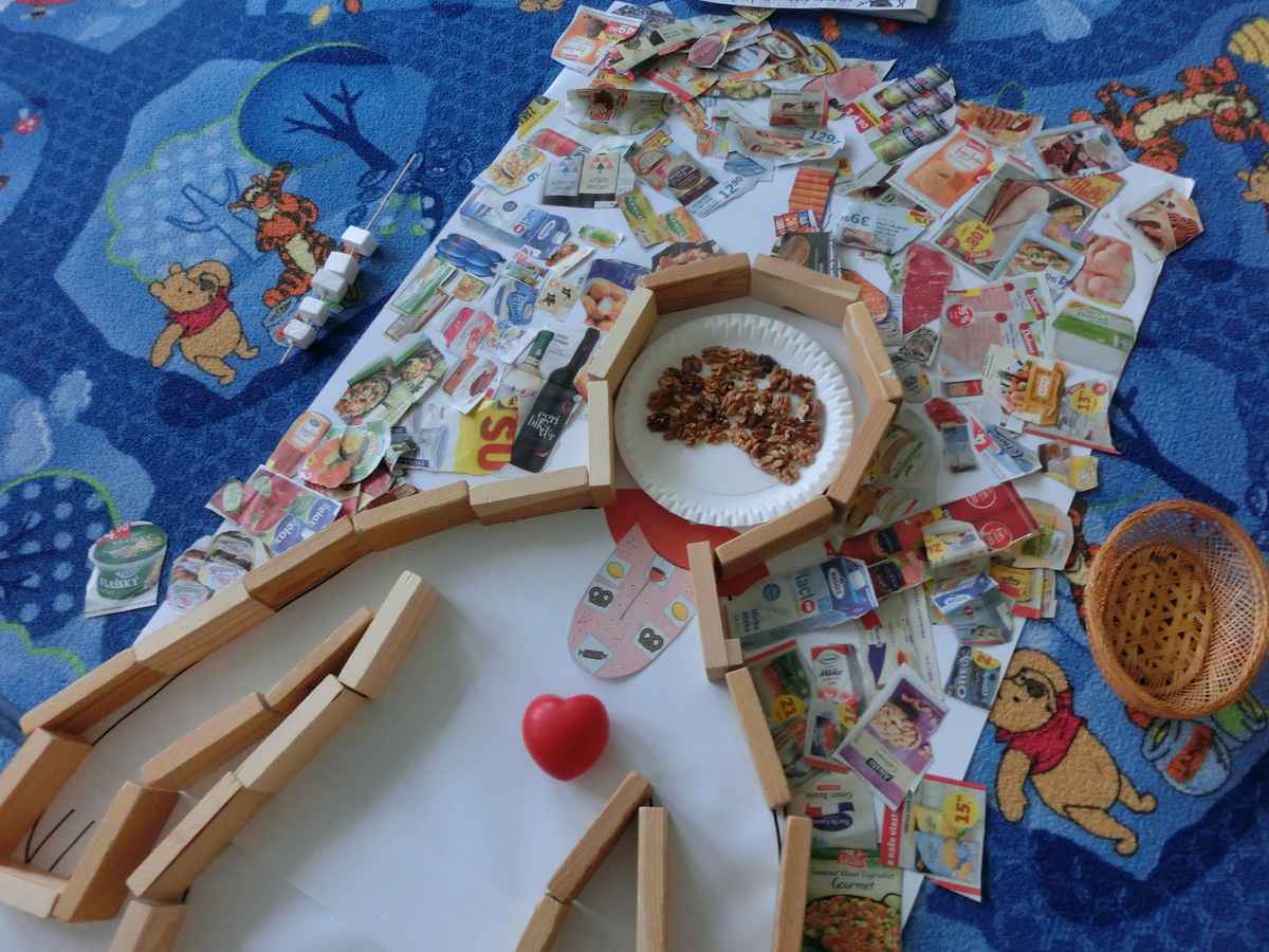 Aby drželo pohromadě, je složeno z kostí. V encyklopediích jsme si prohlédli kostru a vysvětlili si její význam. Na kostru se upínají svaly, které umožňují človíčkovi se hýbat, skákat a dovádět nebo i pracovat. Pověděli jsme si, že tělo řídí mozek, ale i srdce má svou nezastupitelnou roli. Aby kosti a svaly byly pevné a silné, potřebují stavební látku, kterou jsou bílkoviny a tak jsme hned zjišťovali, co to bílkoviny jsou a jak je tělu dodáme. Když už je stroj sestavený, potřebujeme ho něčím pohánět. Děti, ale věděly, že pohánět musíme nějakou energií, jako hodiny baterkou, mlýny větrem nebo vodou, auto benzínem,…Tak, kdepak vezme človíček energii na pohyb? Samozřejmě, že z jídla. Vysvětlili jsme si, že energii tělu přináší „cukry“, ale je rozdíl, jestli jsou jednoduché nebo složené. Protože ty jednoduché naše tělo rychle spálí. Máme sice na začátku hodně energie, ale ta rychle vyprchá a za chvíli už máme zase hlad. Když ale sníme ty složené (ukázali jsme si na polystyrénových kostičkách navléknutých na špejli J), uvolňují se postupně a my máme energii na hraní na celé dopoledne. A co se stane, když človíček hodně sní, dodá tělu hodně energie, ale málo se hýbe, takže ji nespotřebuje? Tak se přebytky přemění na tuky a faldíky a uloží se do zásoby jako do spižírny na horší časy. A když je zásoba moc velká, človíček tloustne. Říká se, že je obézní nebo má nadváhu. Vyzkoušeli jsme si, jak se tlustému človíčkovi sportuje. Děti si oblékly plovací vestu nebo se vycpaly polštáři a zdolávaly obvyklou opičí dráhu. Svorně potom zhodnotily, že to byla hrůza a bylo to těžké, protože se nemohly vůbec hýbat, bylo jim velké teplo, strašně se potily a některé si stěžovaly, že se jim špatně dýchá. Tak doufejme, že si tuto zkušenost zapamatují a budou jíst přiměřeně, vybírat si zdravější potraviny a dostatečně se hýbat, aby se obezitě vyhnuly.