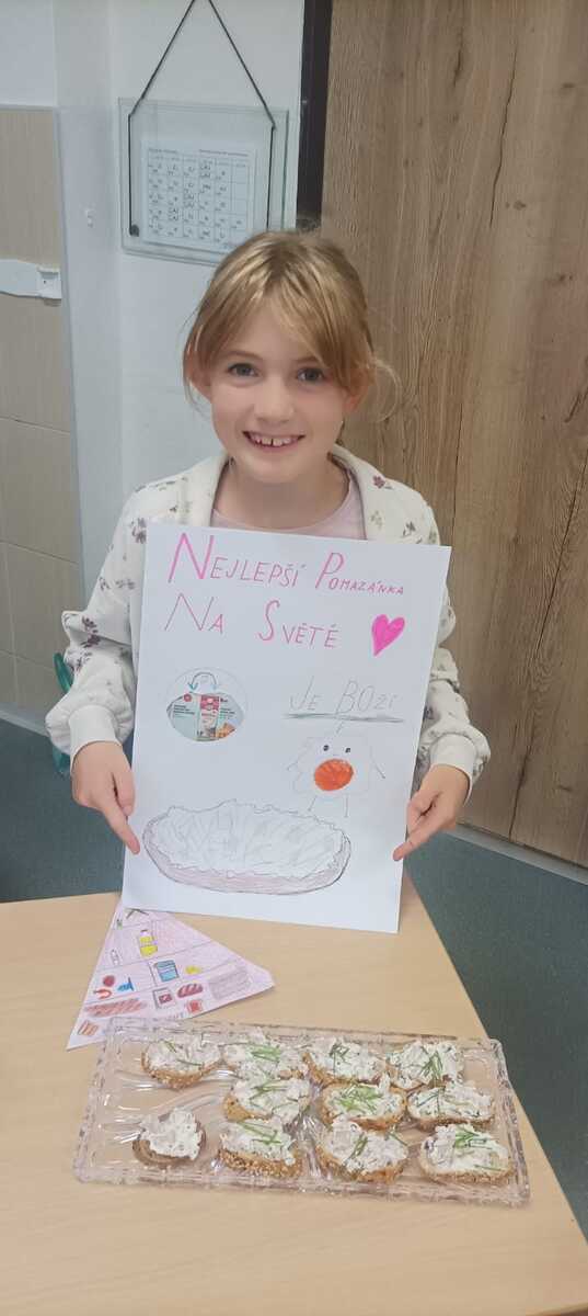 Nezůstalo ale jen u vaření – každý tým měl za úkol vytvořit i vlastní reklamní letáček, kterým by nalákal spolužáky na svou nejlepší svačinku. Děti tak rozvíjely nejen své kulinářské dovednosti, ale i tvořivost, týmovou spolupráci a finanční gramotnost.