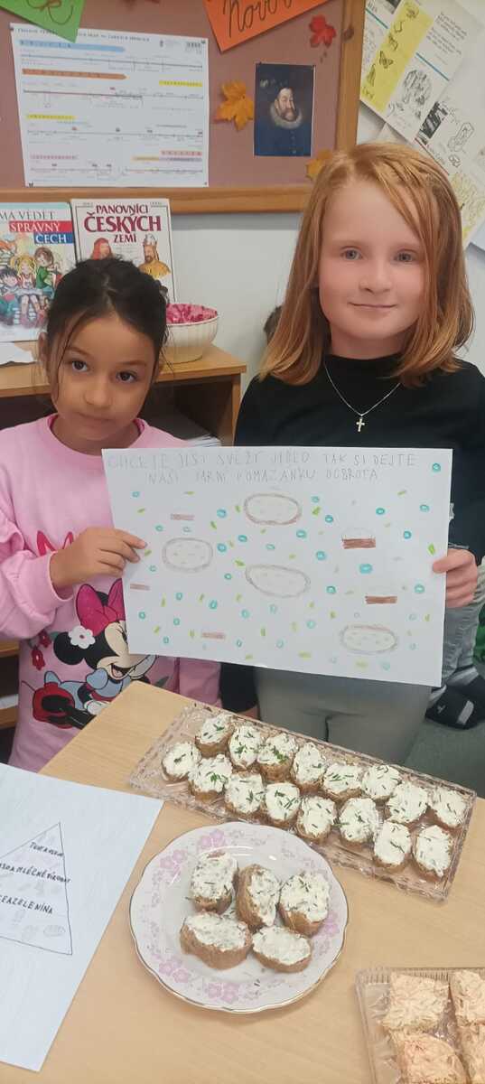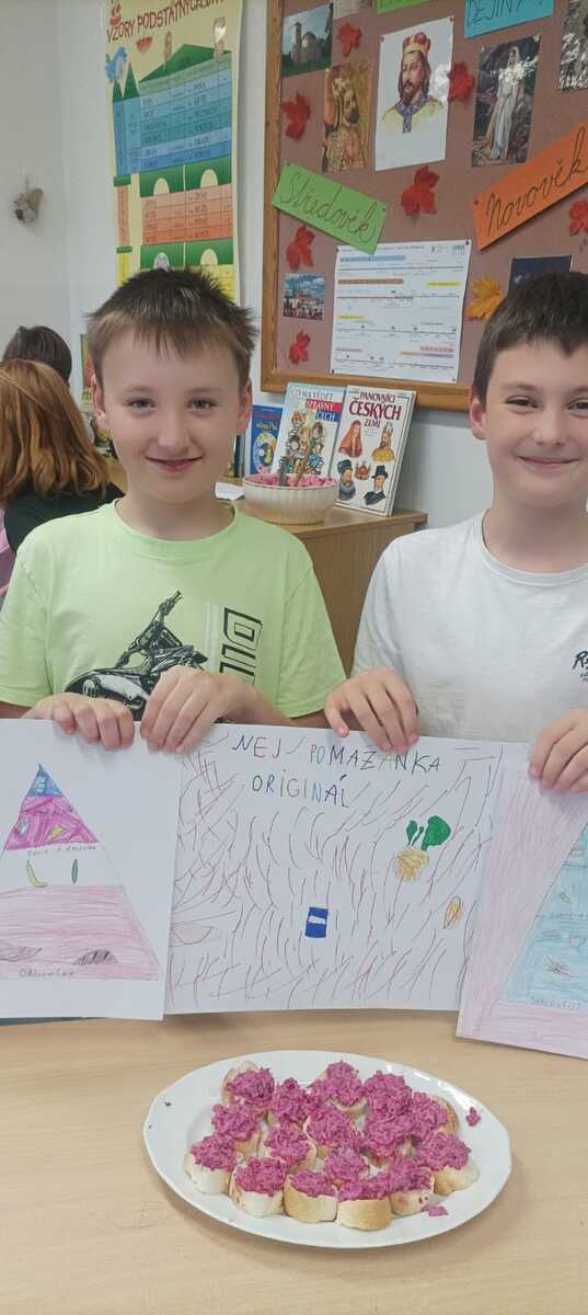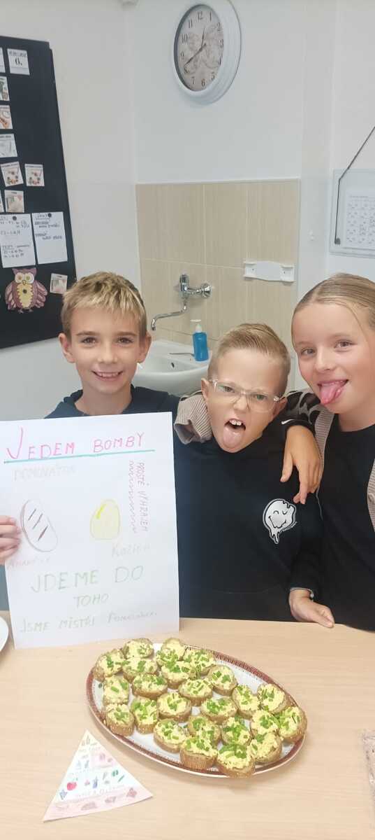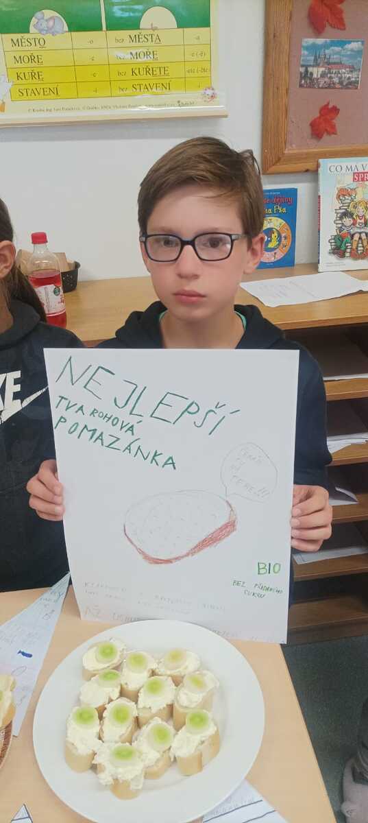 Žáci 4. A si v rámci projektu zdravého stravování vyzkoušeli, jaké to je být kuchařem i marketérem zároveň. Nejprve samostatně nakoupili zdravé potraviny a poté ve cvičné kuchyňce připravili chutné pomazánky, chlebíčky a jednohubky.