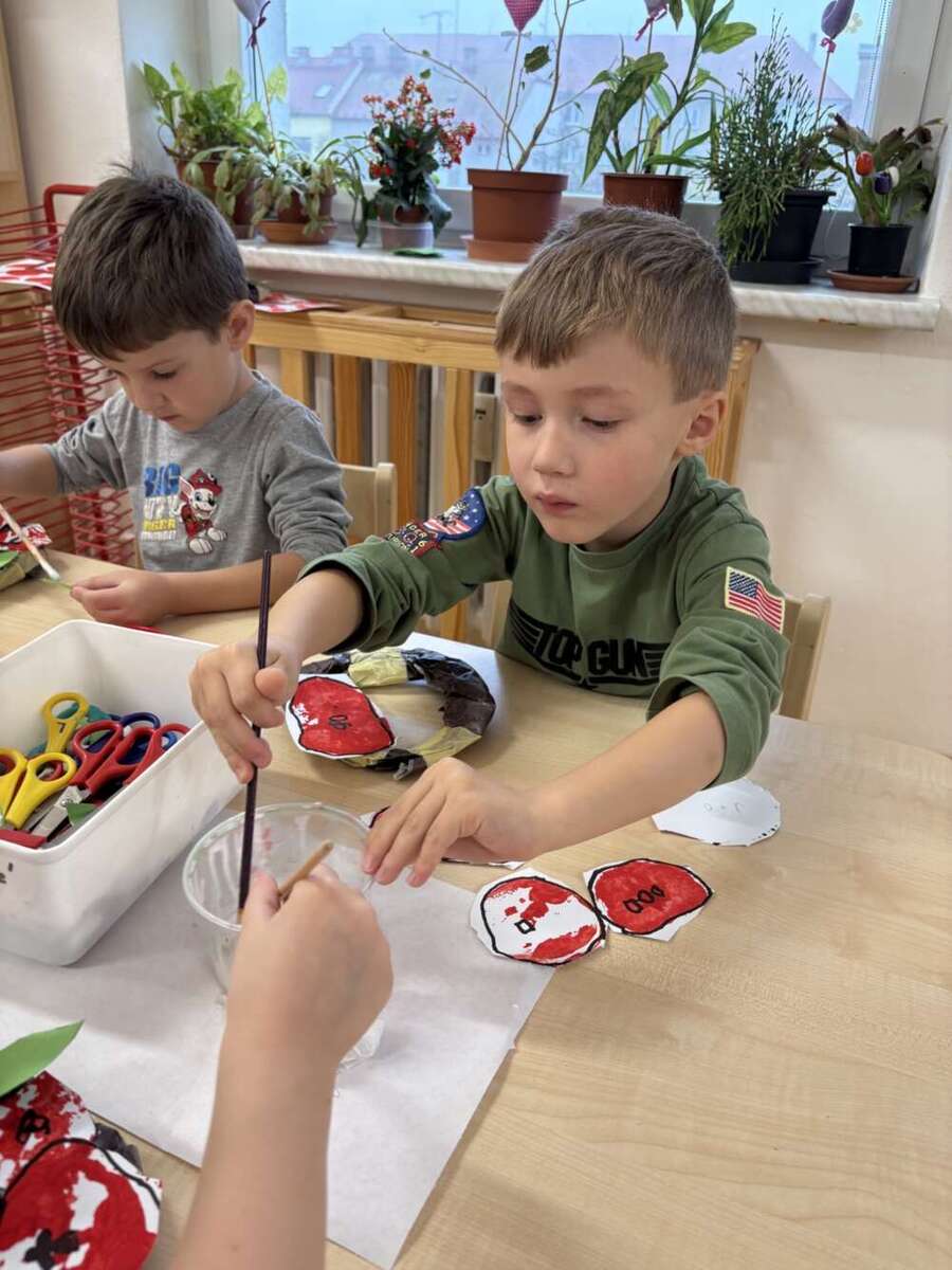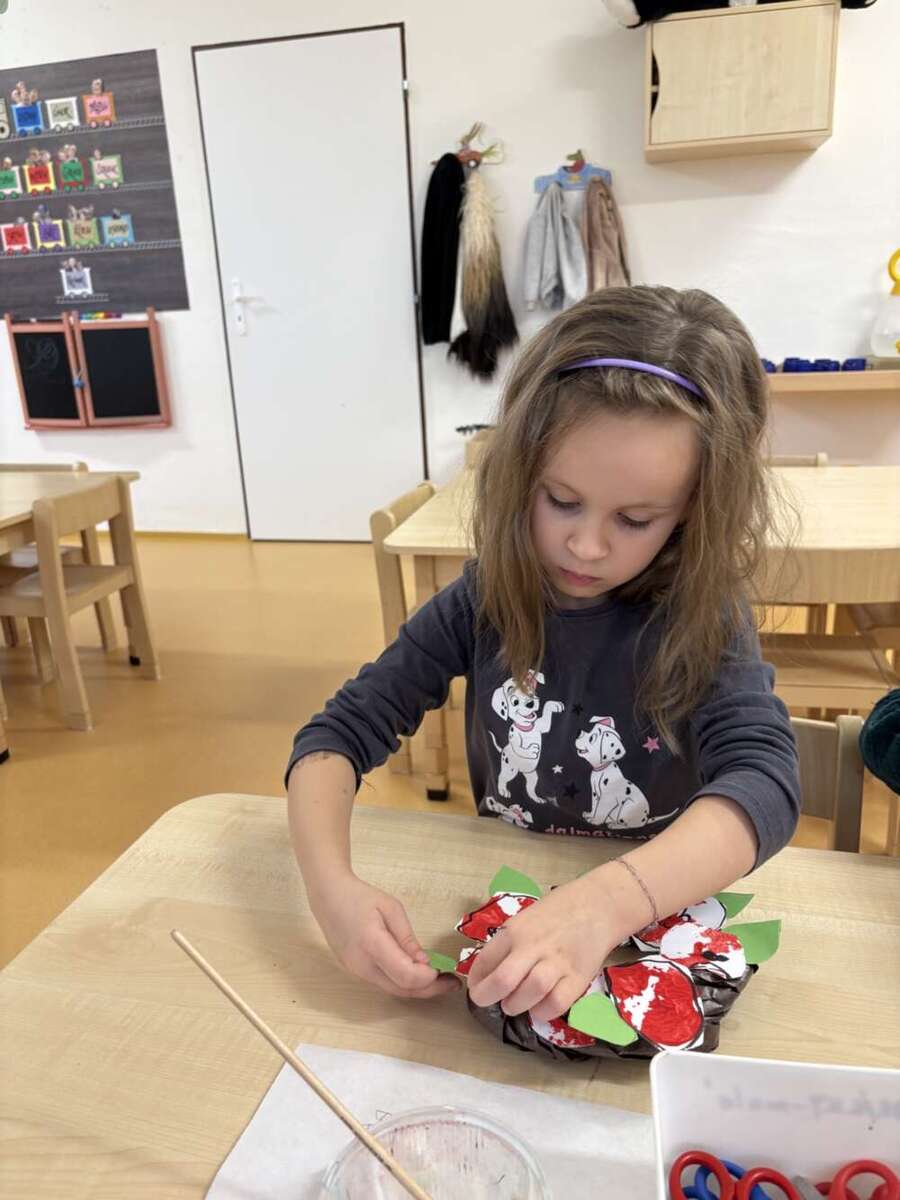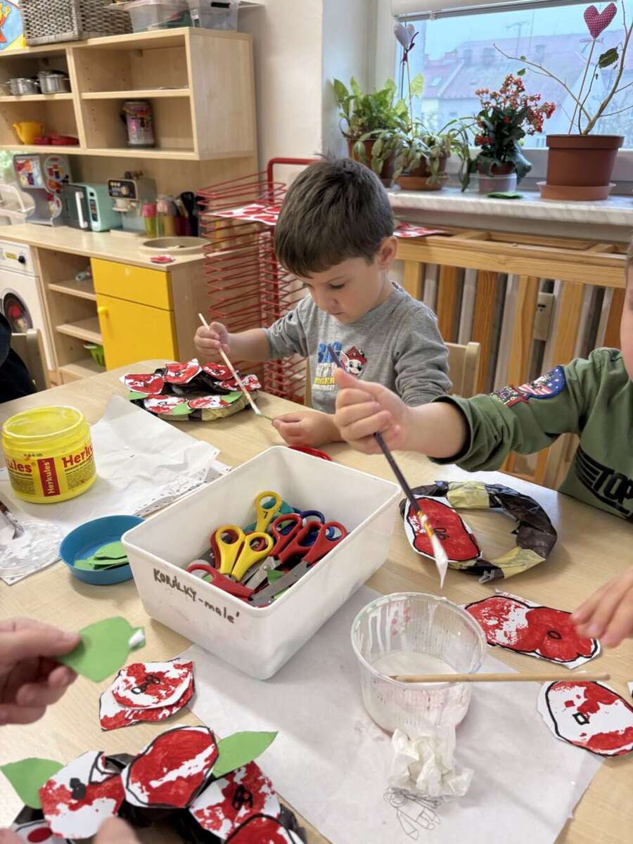 Ráno jsme tvořili věnce pro maminky a pak jsme si šli protáhnout tělo, nejprve jogové protažení a pak už pořádné řádění v tělocvičně. Pohyb je naší součástí, je pro nás uvolněním energie a hlavně už všichni víme, že je velmi dobrý pro náš vývoj.