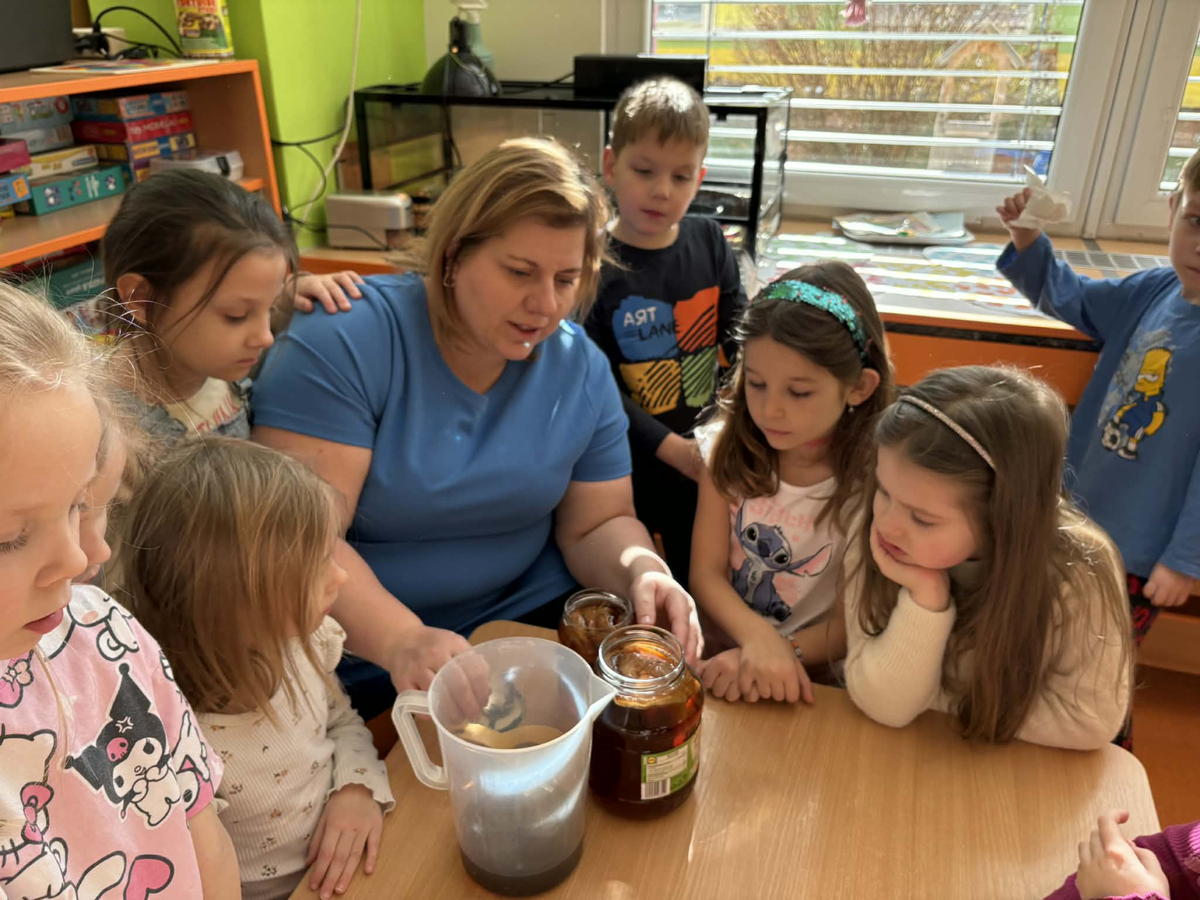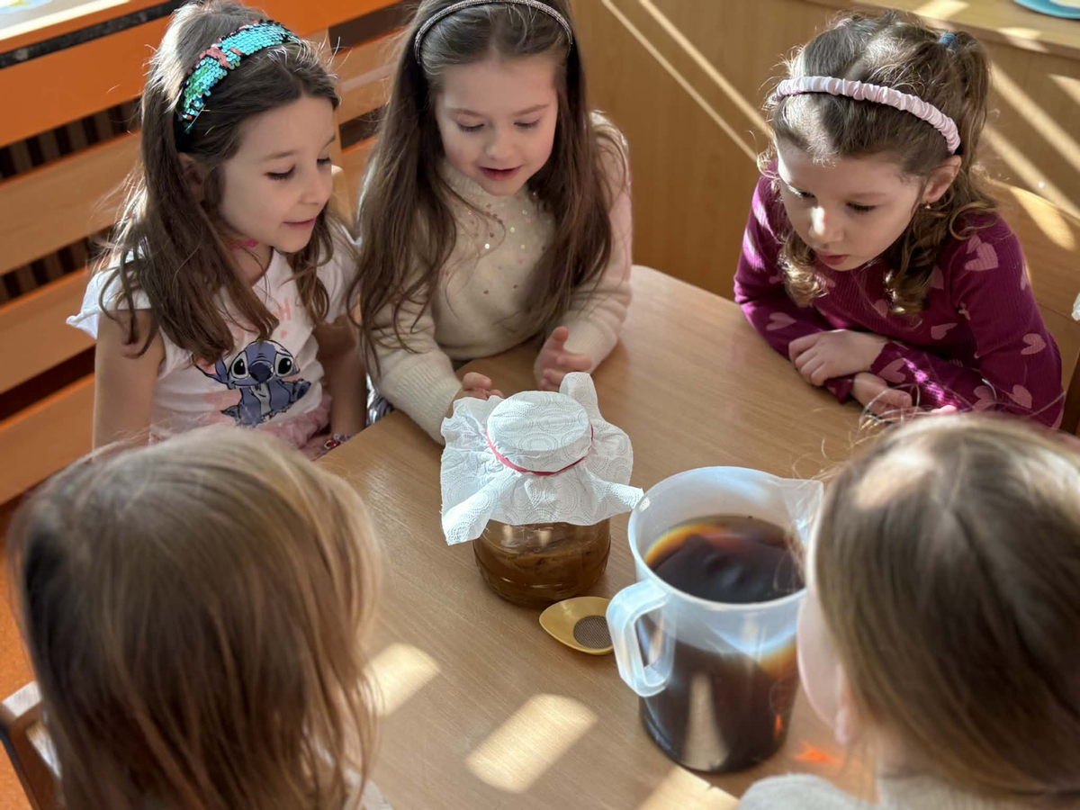 Paní učitelka Lucka nejdřív dětem slavnostně představila kombuchovou kulturu. „To je takový malý pracovitý kamarád,“ vysvětlovala...