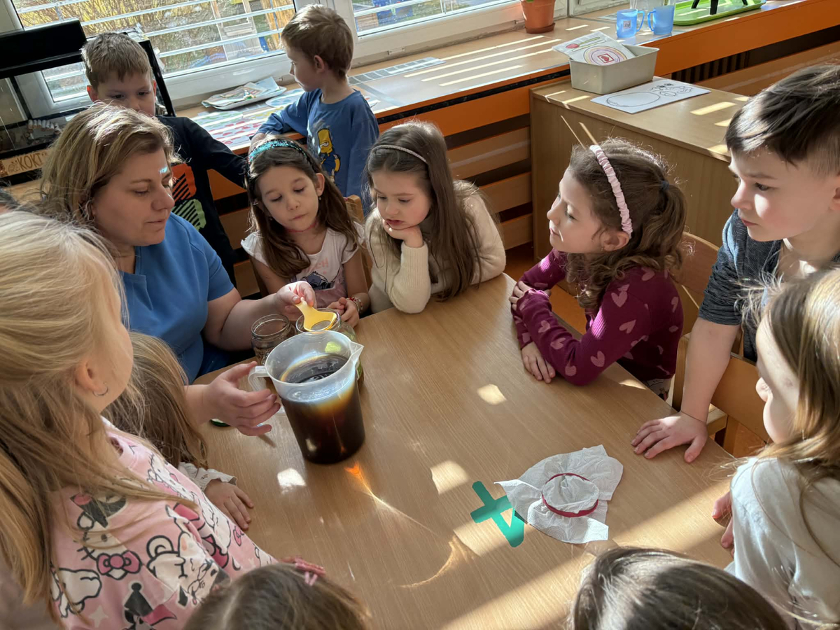 A tak se u nás ve třídě nejen kreslí, zpívá a hraje, ale také tiše bublá zdraví. Protože být Skutečně zdravá škola znamená objevovat, zkoušet nové věci a radovat se z maličkostí… třeba i z kombuchy od Kryštůfkovy maminky.