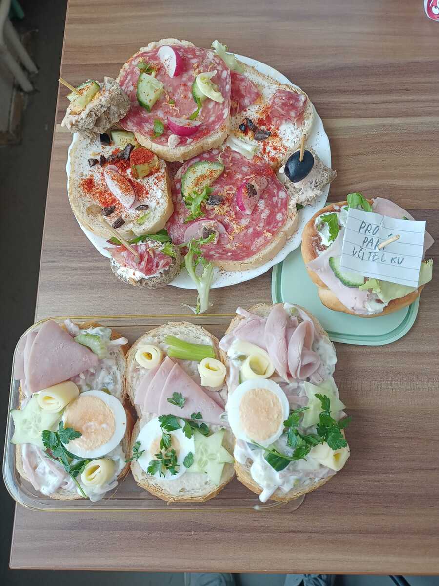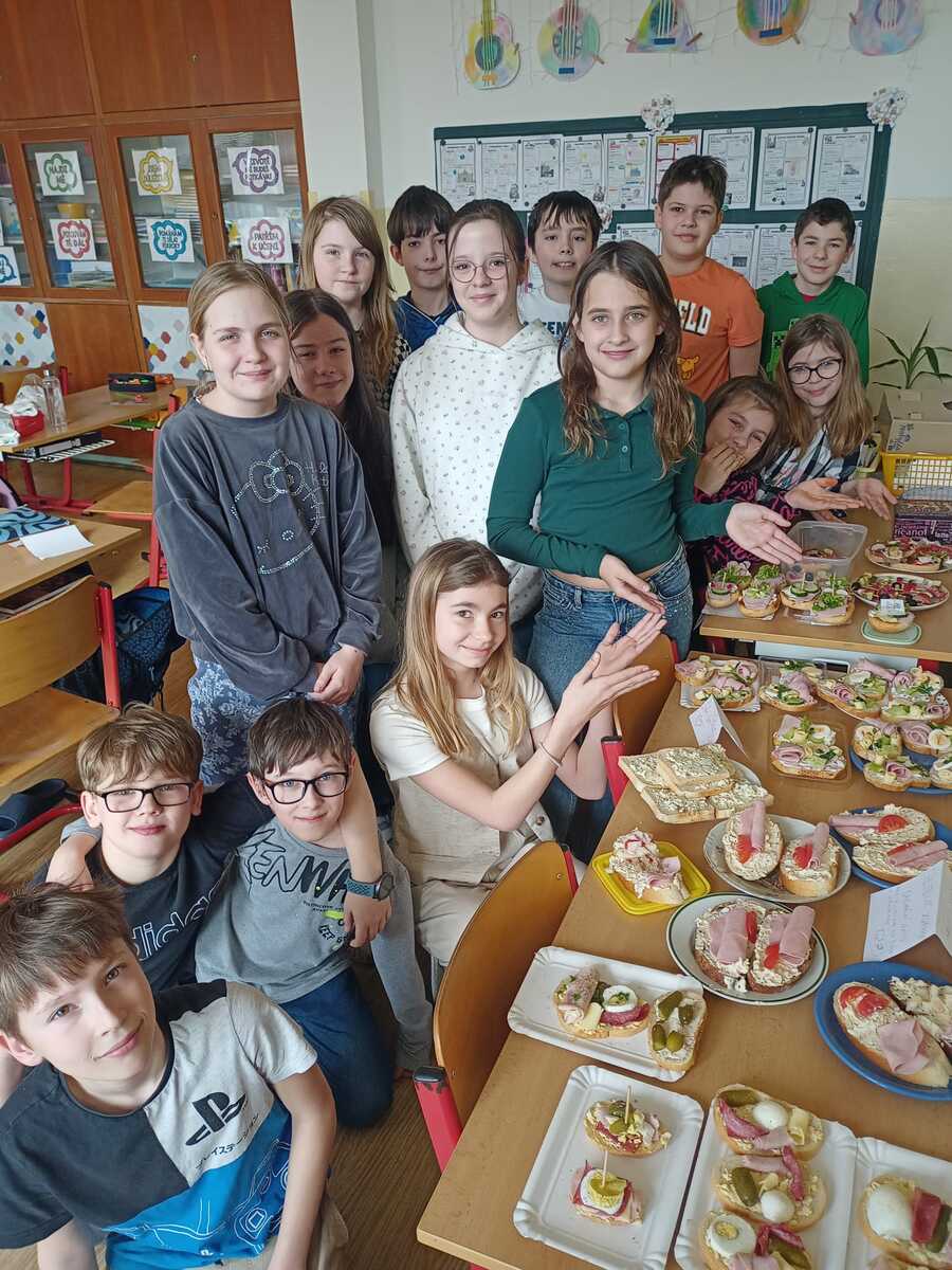 Žáci třídy 5. A si v rámci projektu „Skutečně zdravá škola“ zpestřili výuku netradičním a zároveň velmi chutným způsobem. Během tzv. chlebíčkového dne si v hodině sami připravili různé druhy chlebíčků.Děti pracovaly ve skupinkách, kde měly možnost zapojit svou kreativitu, spolupracovat a zároveň se naučit něco o zdravém stravování. Na stolech se objevily pestré kombinace surovin – čerstvá zelenina, pomazánky, sýry i kvalitní pečivo. Každý chlebíček byl originál a bylo vidět, že si žáci dali opravdu záležet. Po dokončení následovala ta nejlepší část celého dne – ochutnávka. Všechny připravené chlebíčky totiž žáci společně snědli a užili si tak nejen radost z vlastnoručně vytvořeného jídla, ale i příjemnou atmosféru sdílení.Chlebíčkový den se velmi vydařil a ukázal, že i výuka může být hravá, praktická a chutná zároveň.