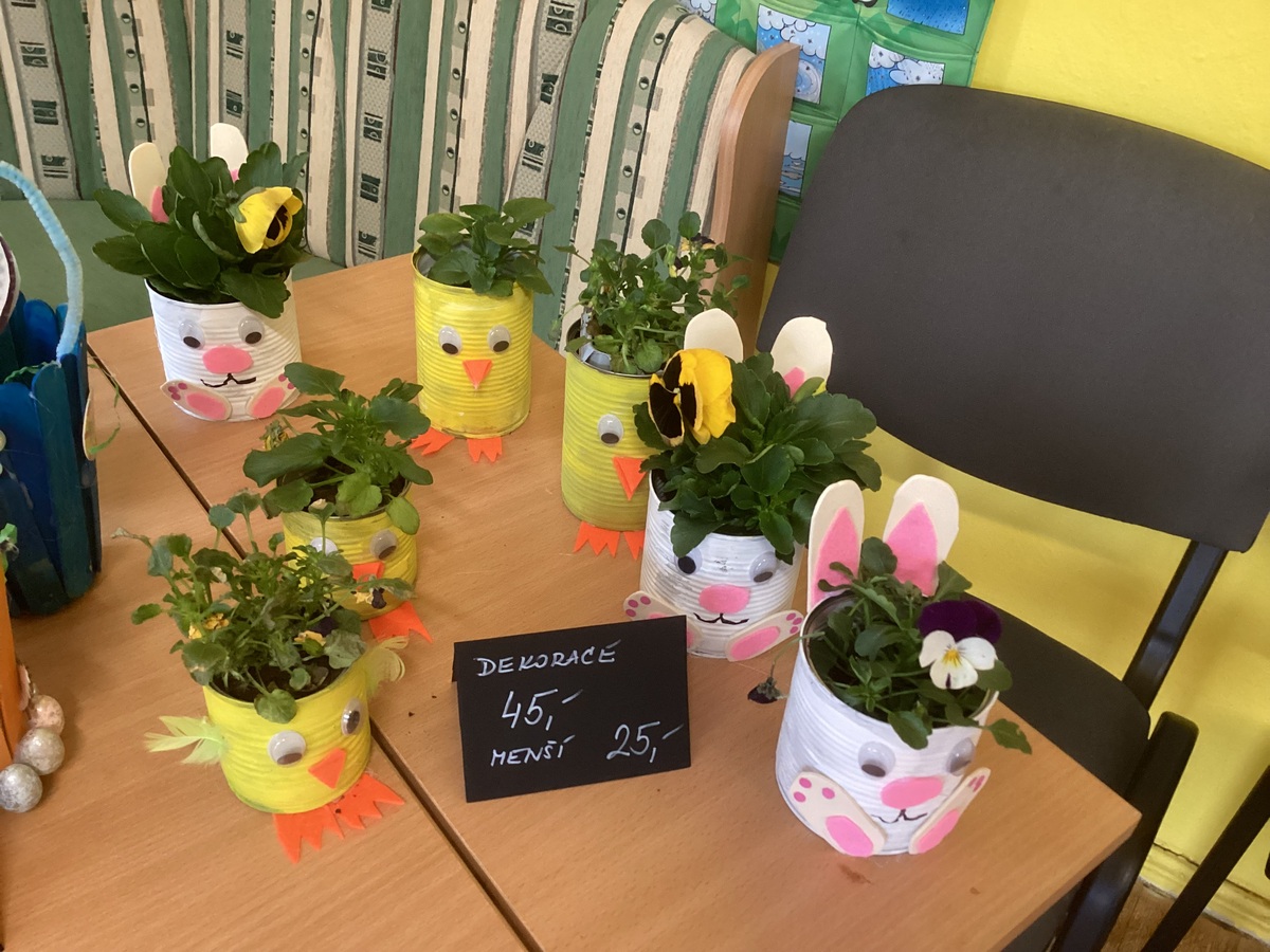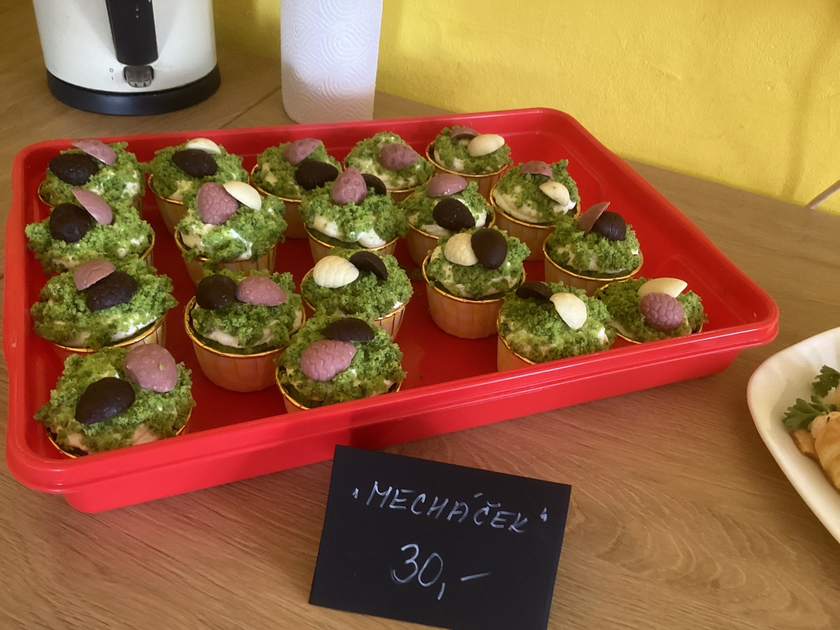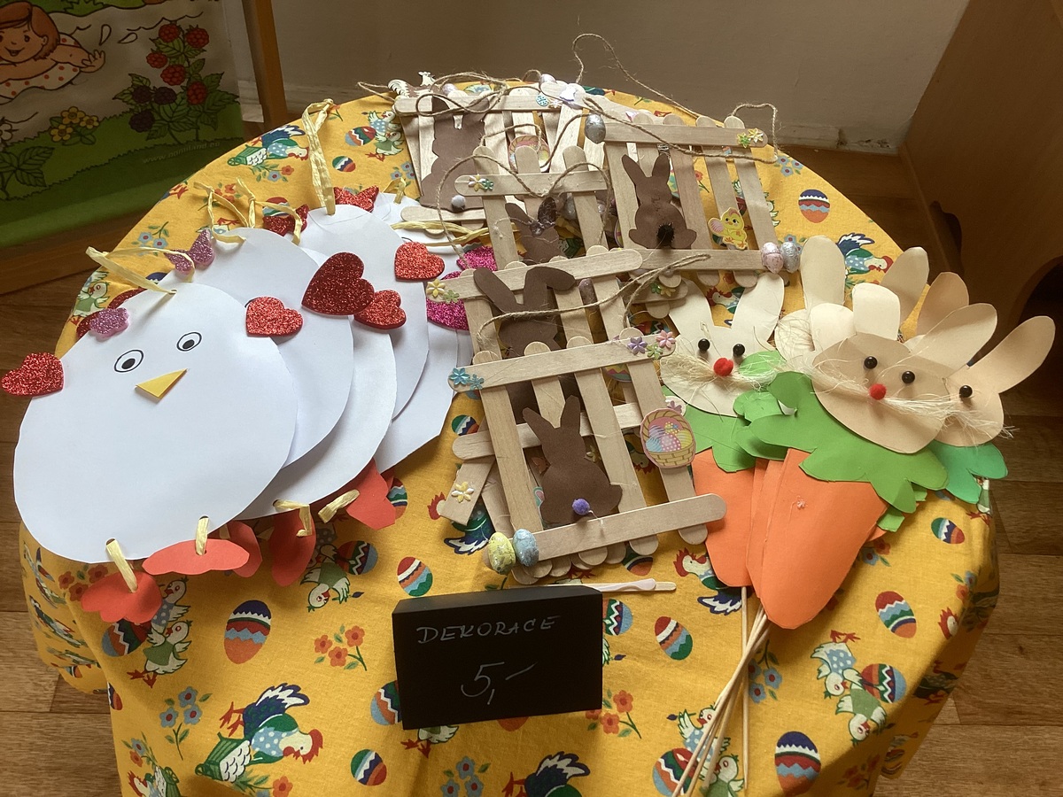 Dne 30.3. byl v naší školce opravdu rušný. Probíhali Zápisy do MŠ, zároveň byl ve školce školní Jarní Jarmark, kde si rodiče i ostatní příchozí mohli nakoupit vše, co jsme s dětmi upekli a vyrobili. A protože už byl téměř velikonoční čas nechyběli mazance nebo třeba mechové (špenátové) dortíčky a hlavně nejoblíbenější velikonoční perníčky zdobené naší paní učetelkou Luckou. V kuchyni bylo také napilno- k ochutnáni pro rodiče připravil kuchař Framtišek domácí špaldové a žitné pečivo, k tomu pomazánky, dále nádivku s kopřivamima a batátovo-bramborovémpyré. Jako sladkou tečku mohli všichni ochutnat špaldový koláč s rebarborou a ovocem. Všechny dobroty měly úspěch a na Jarmarku bylo odpoledne také zcela vyprodáno!!