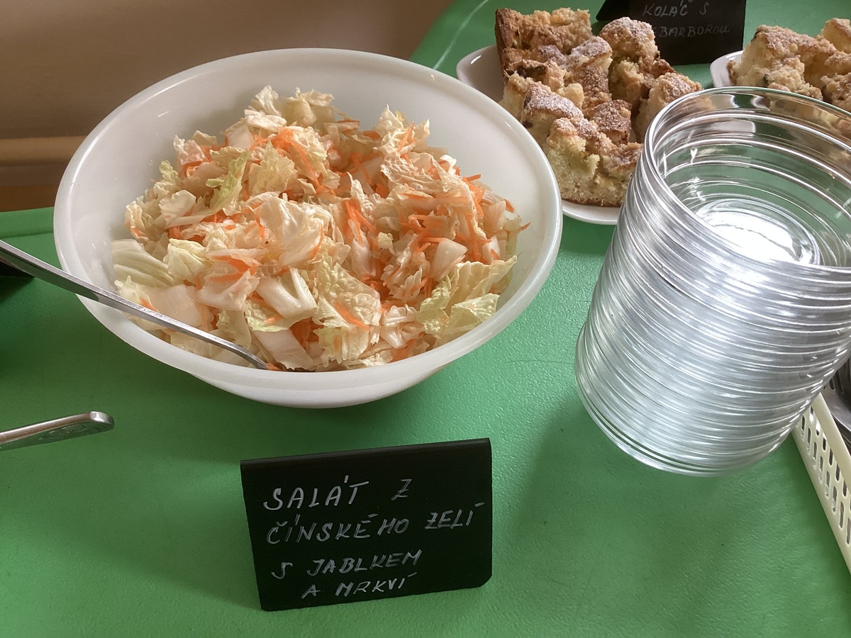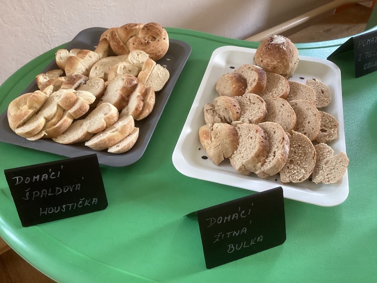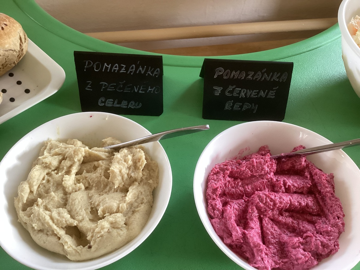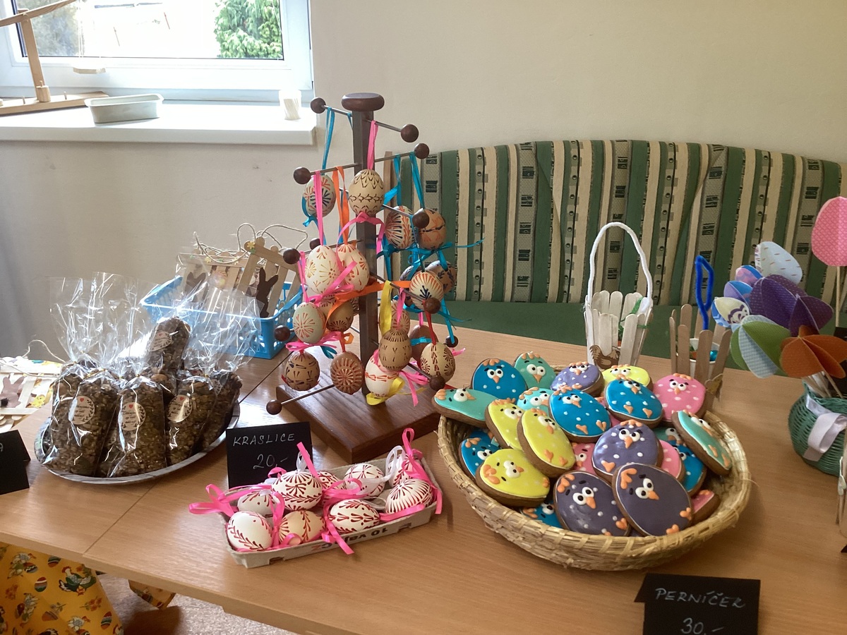 Dne 30.3. byl v naší školce opravdu rušný. Probíhali Zápisy do MŠ, zároveň byl ve školce školní Jarní Jarmark, kde si rodiče i ostatní příchozí mohli nakoupit vše, co jsme s dětmi upekli a vyrobili. A protože už byl téměř velikonoční čas nechyběli mazance nebo třeba mechové (špenátové) dortíčky a hlavně nejoblíbenější velikonoční perníčky zdobené naší paní učetelkou Luckou. V kuchyni bylo také napilno- k ochutnáni pro rodiče připravil kuchař Framtišek domácí špaldové a žitné pečivo, k tomu pomazánky, dále nádivku s kopřivamima a batátovo-bramborovémpyré. Jako sladkou tečku mohli všichni ochutnat špaldový koláč s rebarborou a ovocem. Všechny dobroty měly úspěch a na Jarmarku bylo odpoledne také zcela vyprodáno!!