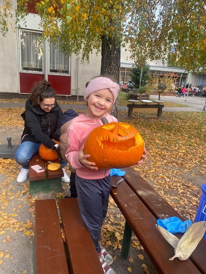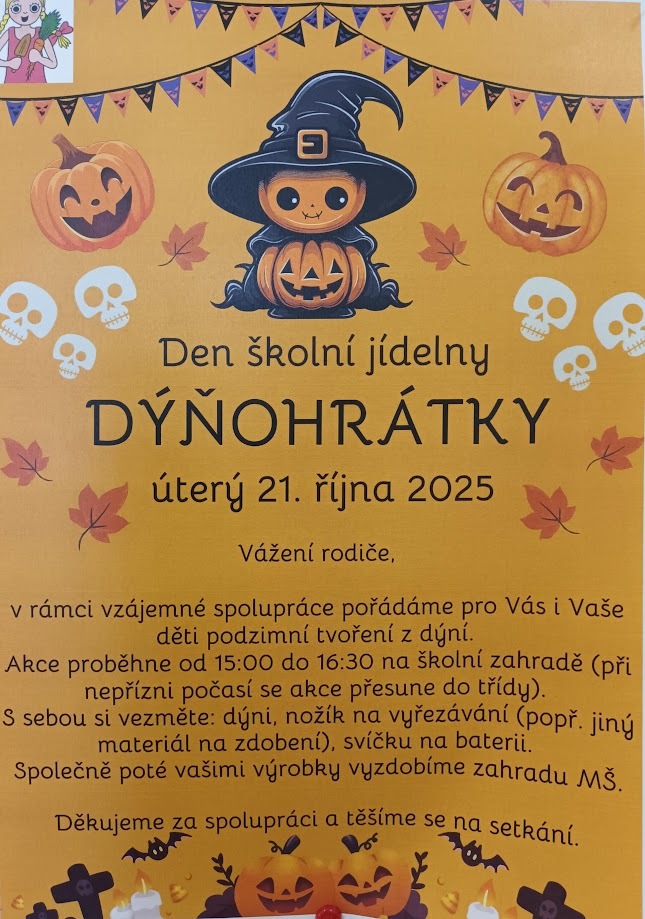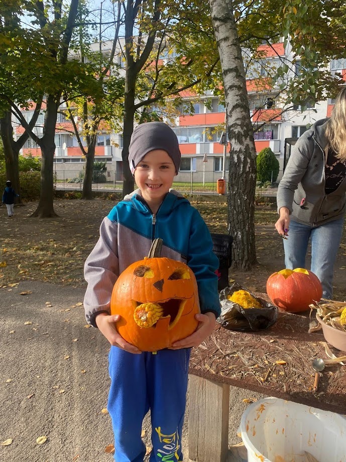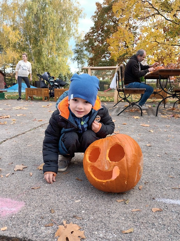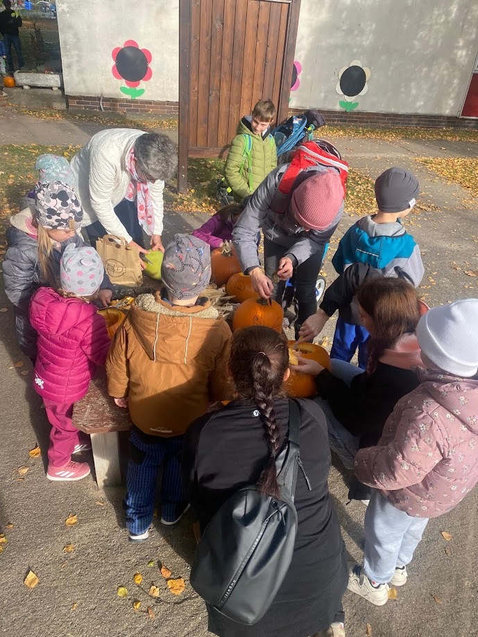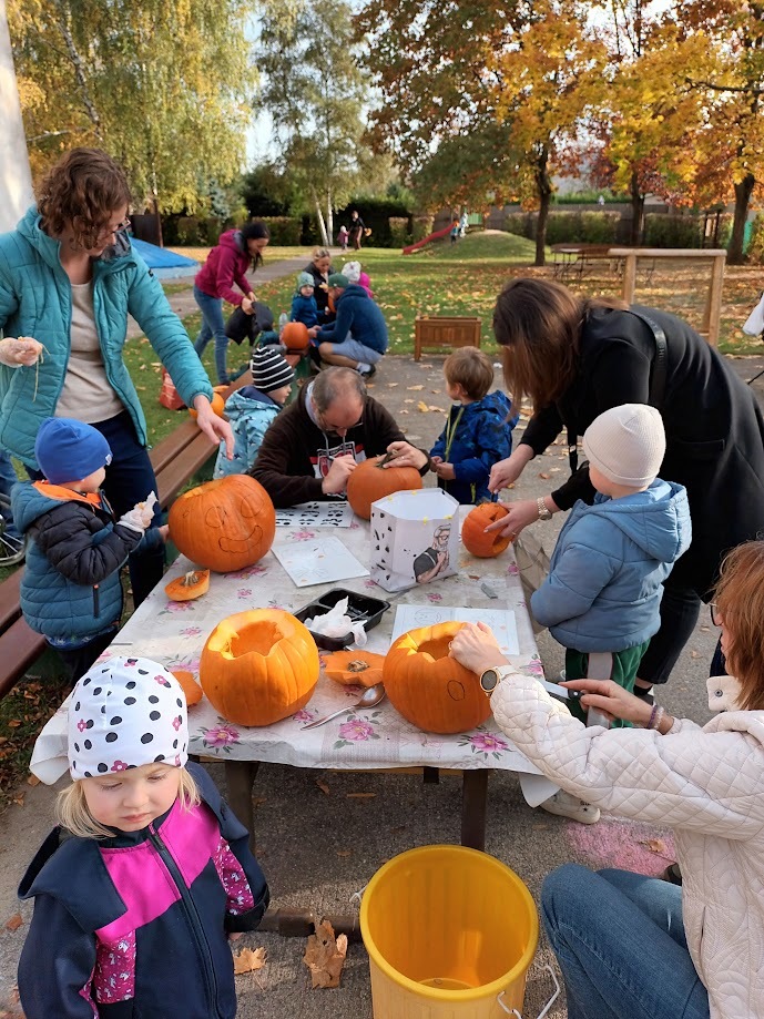 V naší mateřské škole proběhlo už podruhé jedno z nejoblíbenějších odpoledních setkání – Dýňobraní. Děti, rodiče a zaměstnanci mateřské školy se společně pustili v příjemné atmosféře do kreativního dlabání dýní a výroby originálních lucerniček. Každý autor pak vybral to nejlepší místo, kde se jeho výrobek bude vyjímat na školní zahradě.