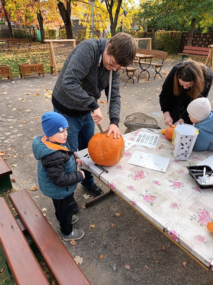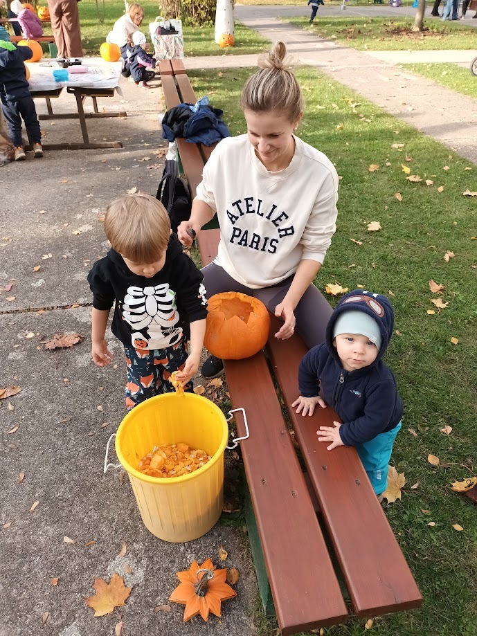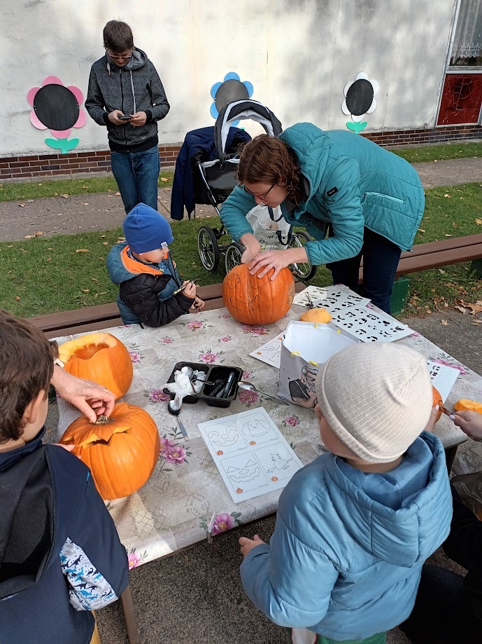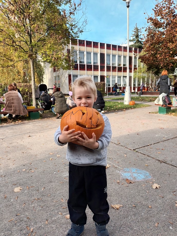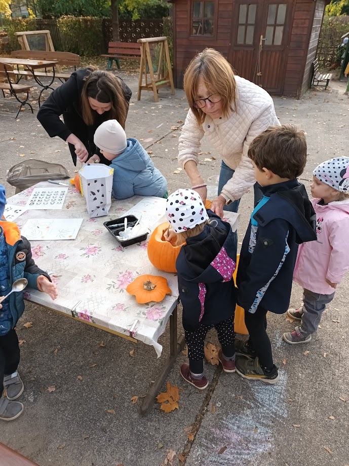 V naší mateřské škole proběhlo už podruhé jedno z nejoblíbenějších odpoledních setkání – Dýňobraní. Děti, rodiče a zaměstnanci mateřské školy se společně pustili v příjemné atmosféře do kreativního dlabání dýní a výroby originálních lucerniček. Každý autor pak vybral to nejlepší místo, kde se jeho výrobek bude vyjímat na školní zahradě.