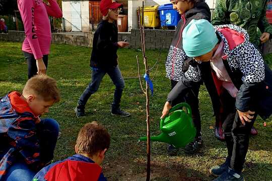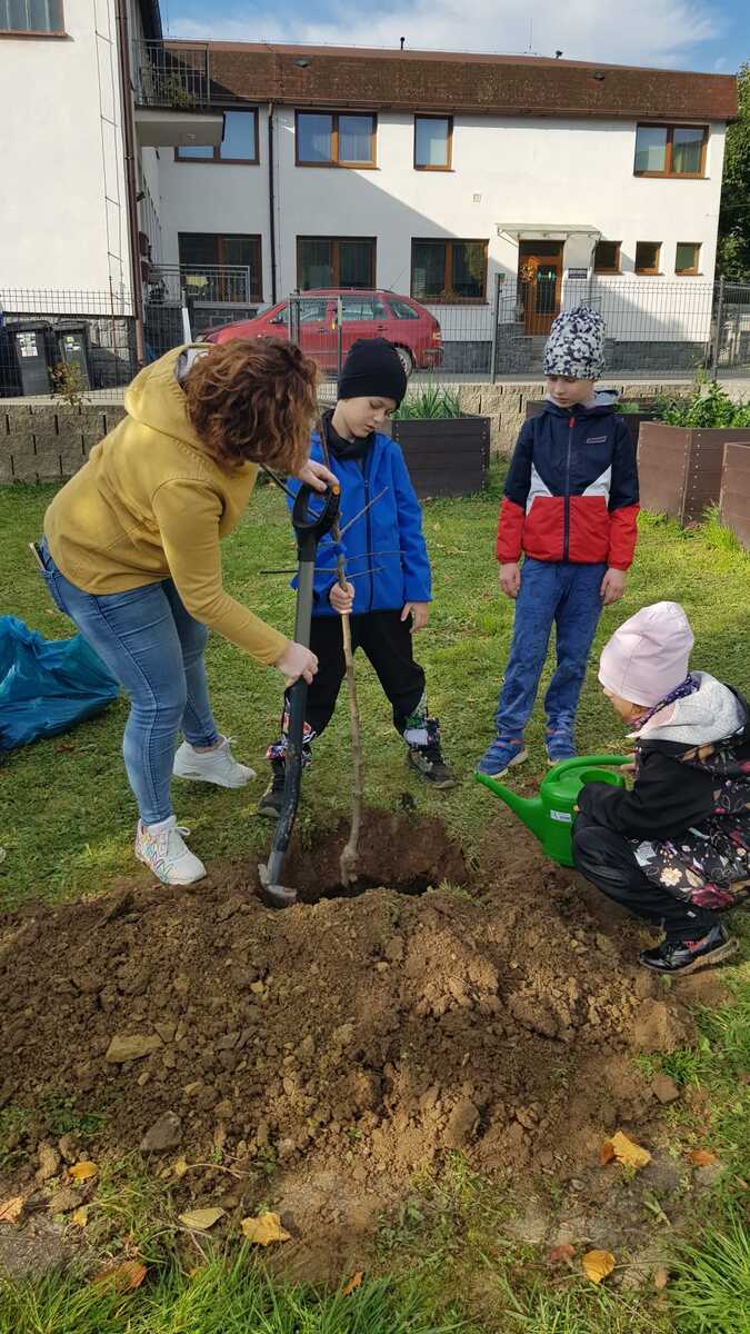 Den stromů jsme v naší školičce oslavili výsadbou ovocných stromků a drobných ovocných keřů. Každá třída si v prostorách školní zahrady vysadila svůj třídní strom, o který se budou společně starat a budou se těšit na jejich sladké plody. Podél zahrady našli své místo i ovocné keře, které časem využijeme ve školní jídelně.