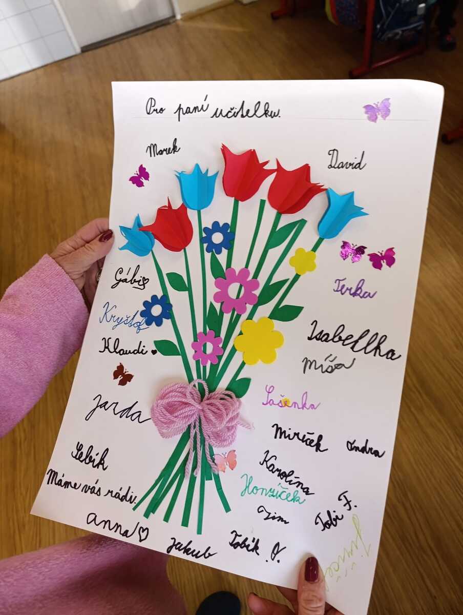 Udělali jsme radost učitelům a naší paní učitelce jsme s láskou předali vlastnoručně vyrobený obrázek.