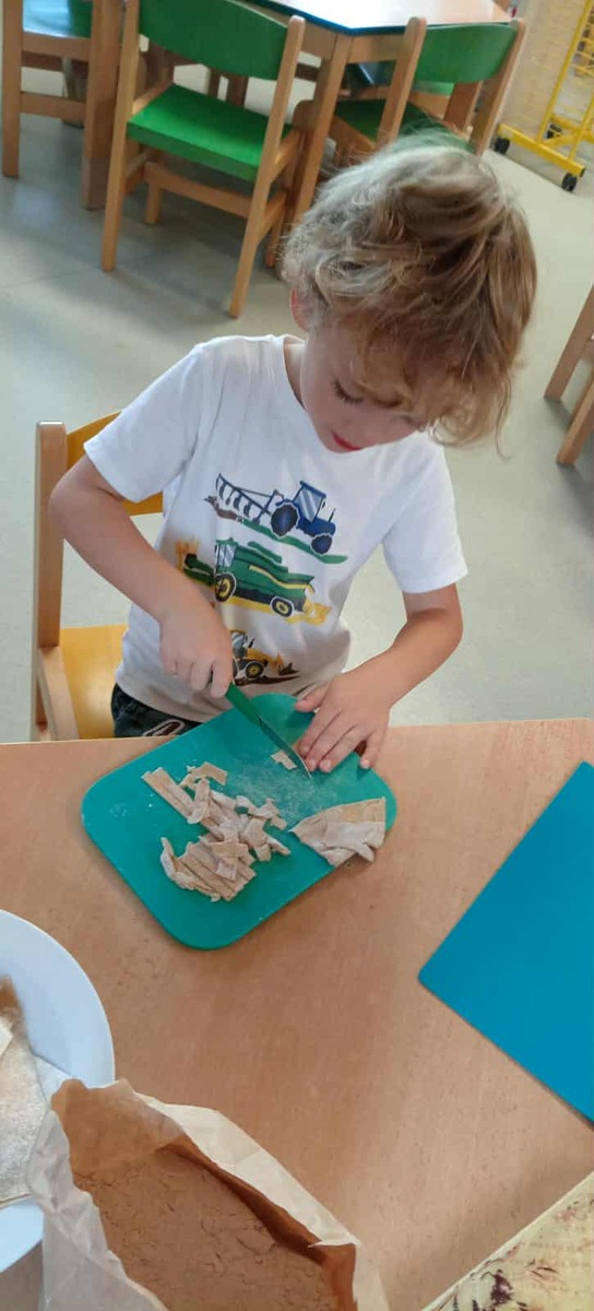 Děti dnes pod vedením paní učitelek pomáhaly s přípravou polévky, z těsta krájely nudličky, které pak polévce dodaly ještě lepší chuť i vůni.