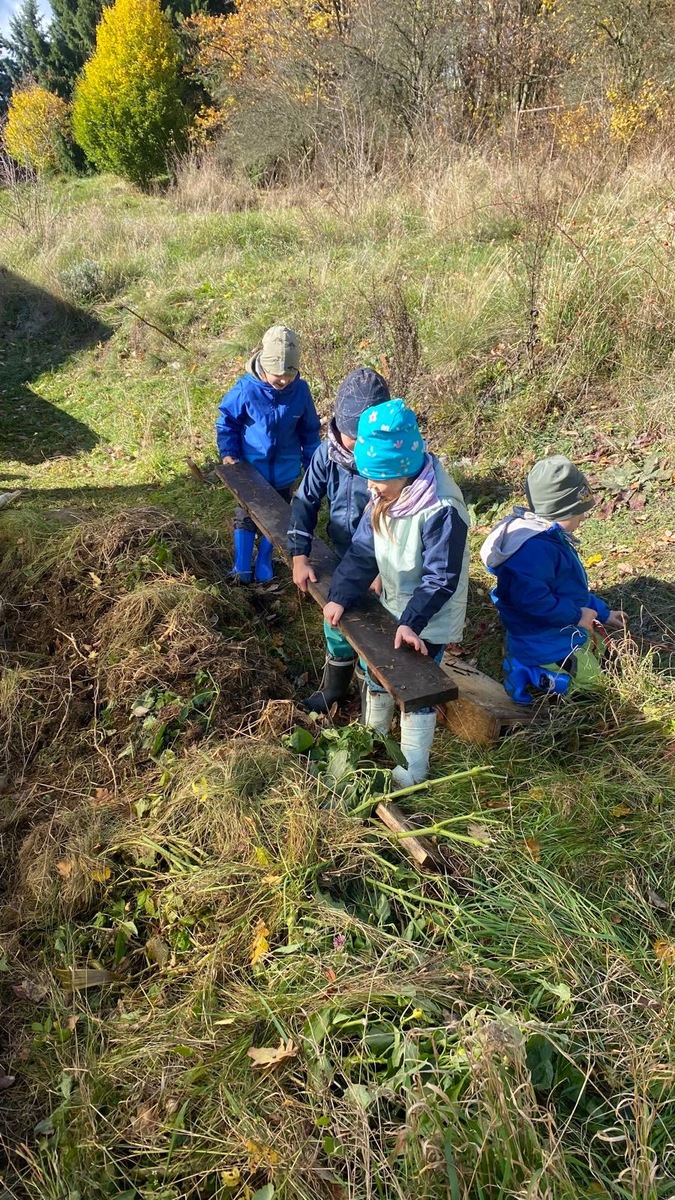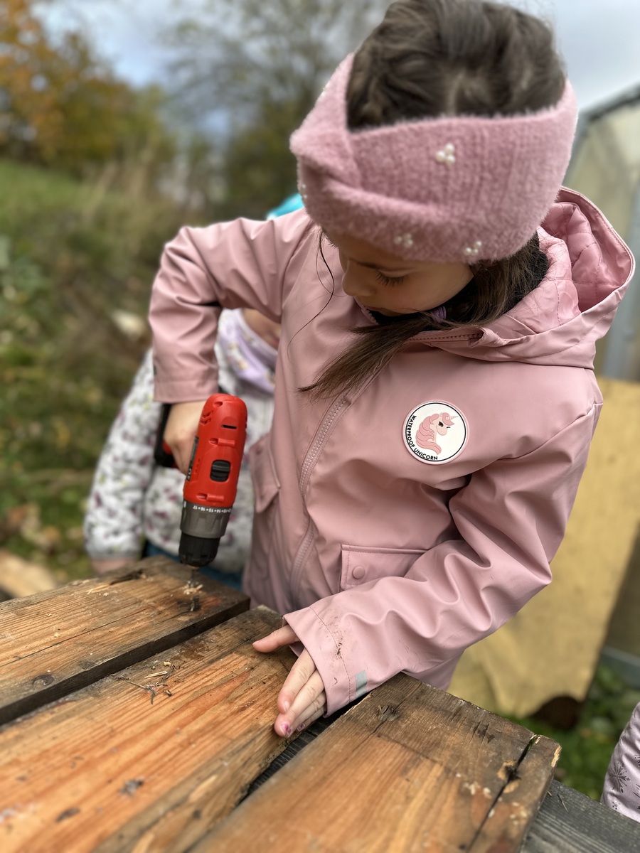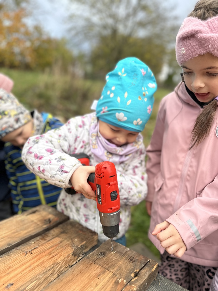 Děti se spolu s paní učitelkami pustily do práce na školní zahradě. Nejprve si povídaly o tom, co je kompost a proč je důležitý pro přírodu. Poté pomáhaly při jeho výrobě – s nadšením zatloukaly hřebíky do dřevěného prkna.