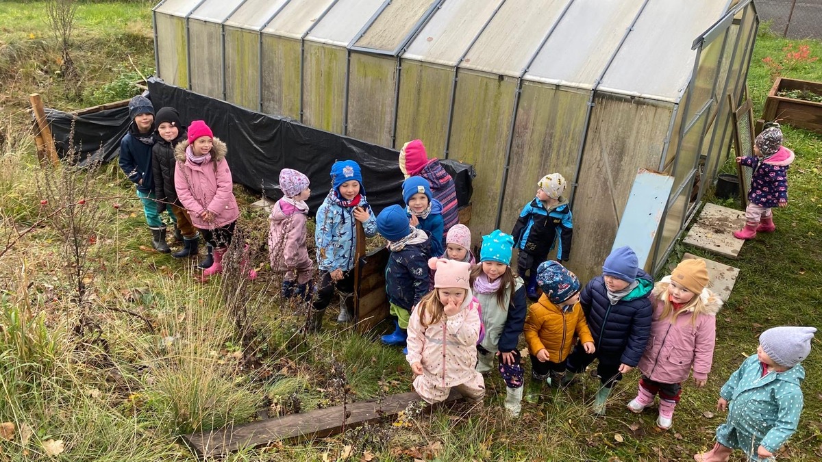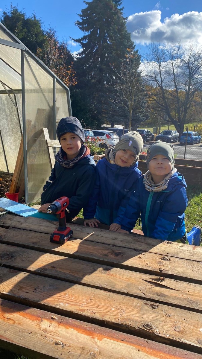 Nakonec se děti vydaly do skleníku, kde zalévaly rostlinky a pečovaly o záhonky. Všichni si užili krásný den plný spolupráce, objevování a radosti z práce na zahradě.