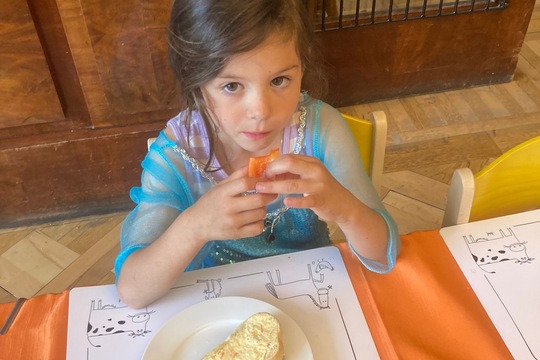Abychom na dopoledne plné zábavy měli dostatek sil, přichystala nám paní kuchařka ke svačince lívanečky s jahodovou marmeládou.