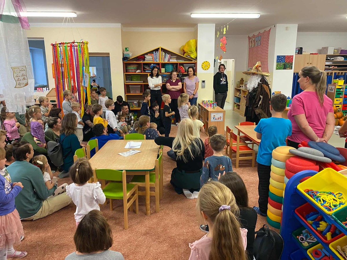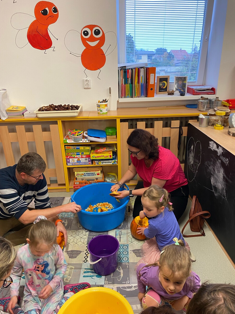 K podzimu v naší školce neodmyslitelně patří Dobroušek, který každoročně přichází za dětmi a jejich rodiči na školní zahradu. Bohužel nám letos počasí nepřálo, a tak jsme Dobrouška přesunuli do prostor mateřské školy.