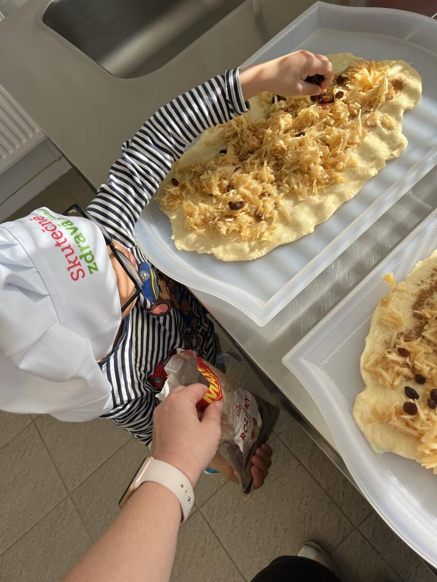 V rámci doplňkové aktivity: Kuchtík si děti dnes s Nikčou upekly úžasný jablečný závin plněný farmářskými jablky. Samozřejmě v náplni nechybí ani rozinky a mandličky. Máme ke svačině opravdu poctivý moučník.