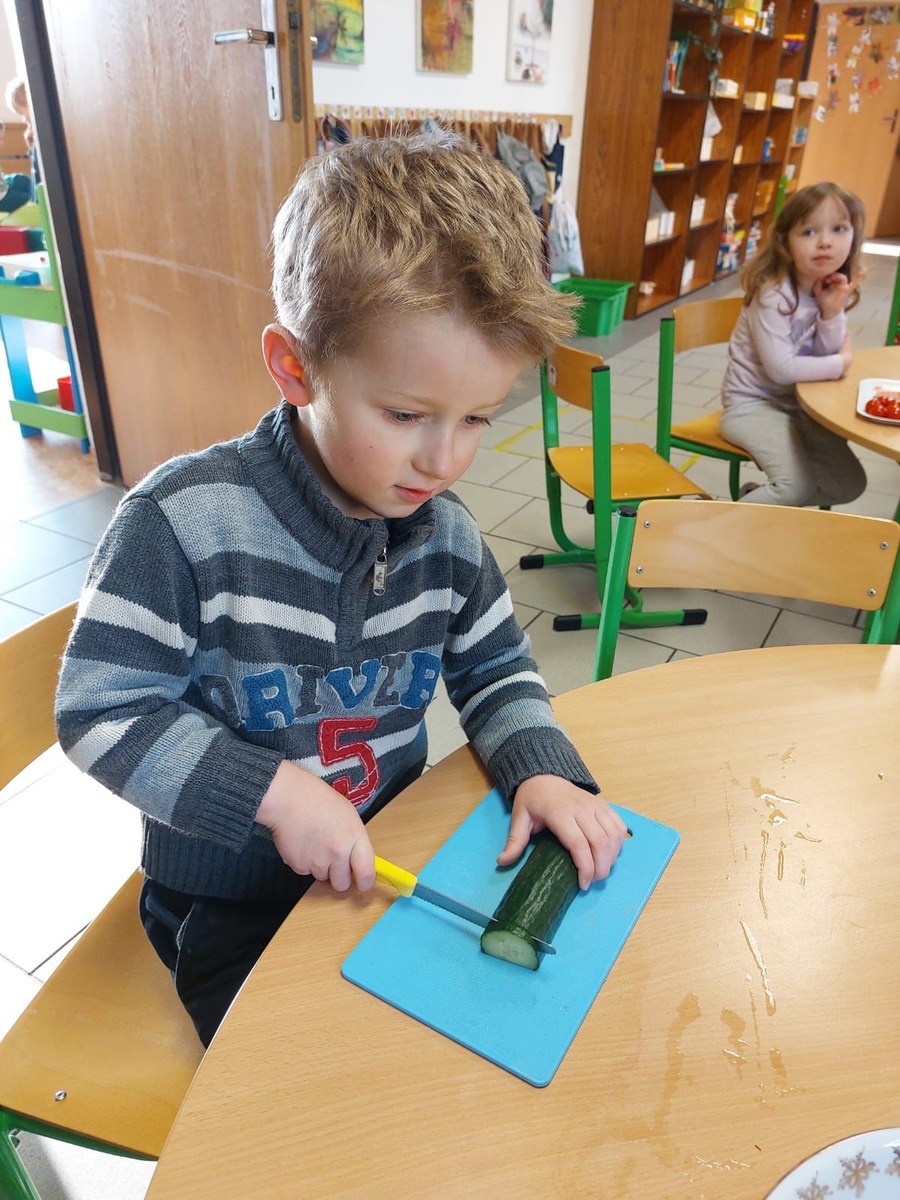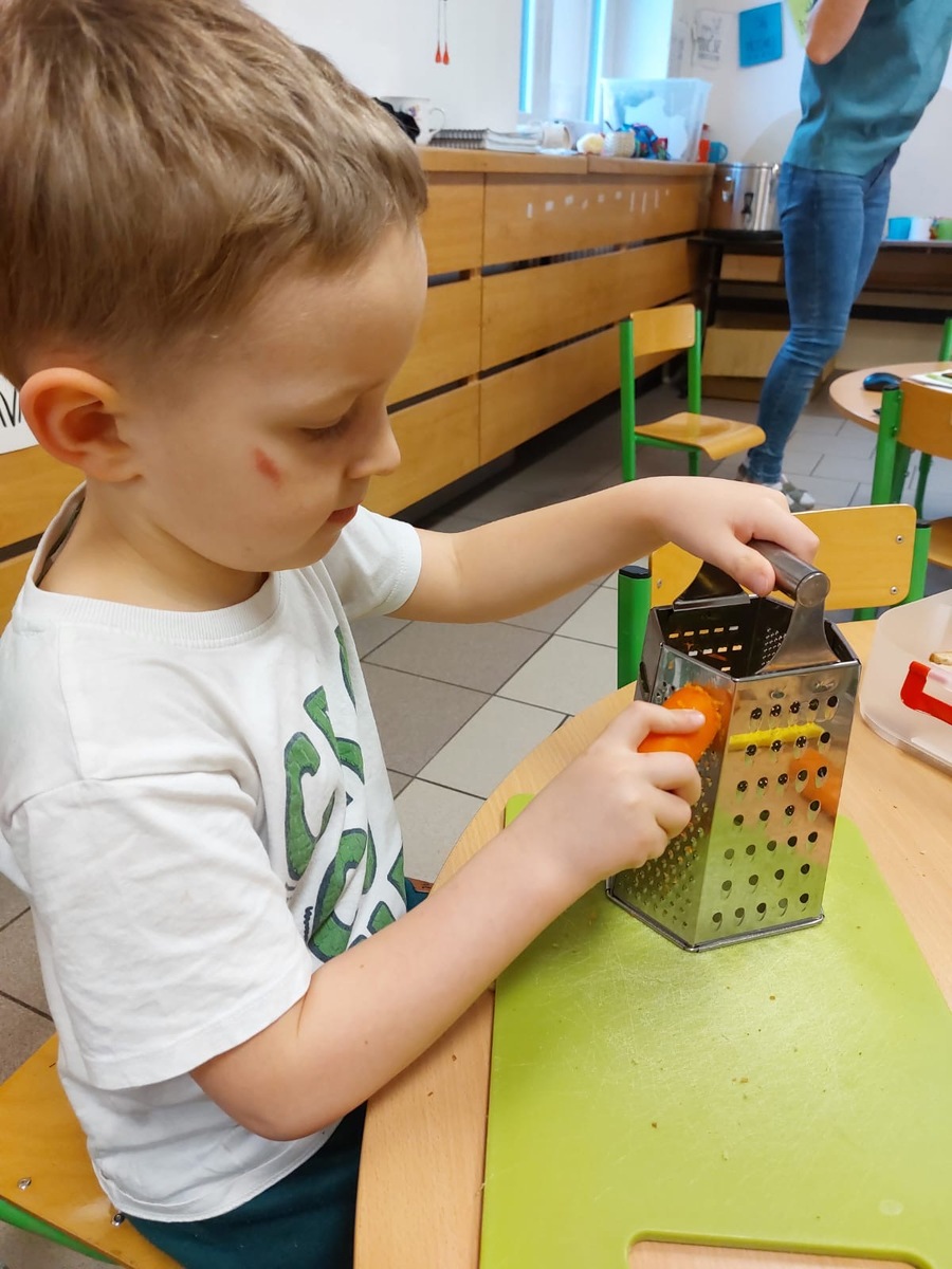 Proč to děláme? Zapojením dětí o přípravy pokrmů podporujeme jejich samostatnost a přirozenou zvědavost. Děti se učí poznávat potraviny všemi smysly, trénují bezpečnou manipulaci s kuchyňským náčiním a hlavně - získávají ke zdravému jídlu pozitivní vztah.