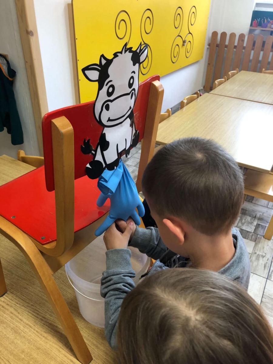 Dvě týdny se zaměřujeme na zvířata – děti poznávají jejich péči, stravu, způsob života a mláďata, a především se učí, co nám jednotlivá zvířata poskytují, například maso, peří, vlnu nebo vejce. Pomáháme jim pracovat s kartičkami, aby lépe pochopily celou zvířecí rodinu a produkty, které získáváme. Na školní zahradě mají možnost vidět kozy, krmit je a pozorovat jejich chov, a prostřednictvím her a zvířecích čepečků si děti hrají na zvířátka a prožívají jejich svět.