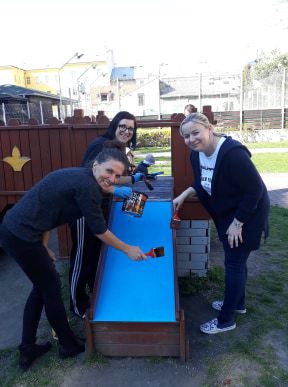 Včera jsme si užili super odpoledne, maminky, tatínkové, babičky a tety nám pomáhali uklidit a oživit zahrádku. Plelo se, natíralo, zametalo a při tom jedlo, pilo a hodně jsme se smáli, bylo to prostě fajn.