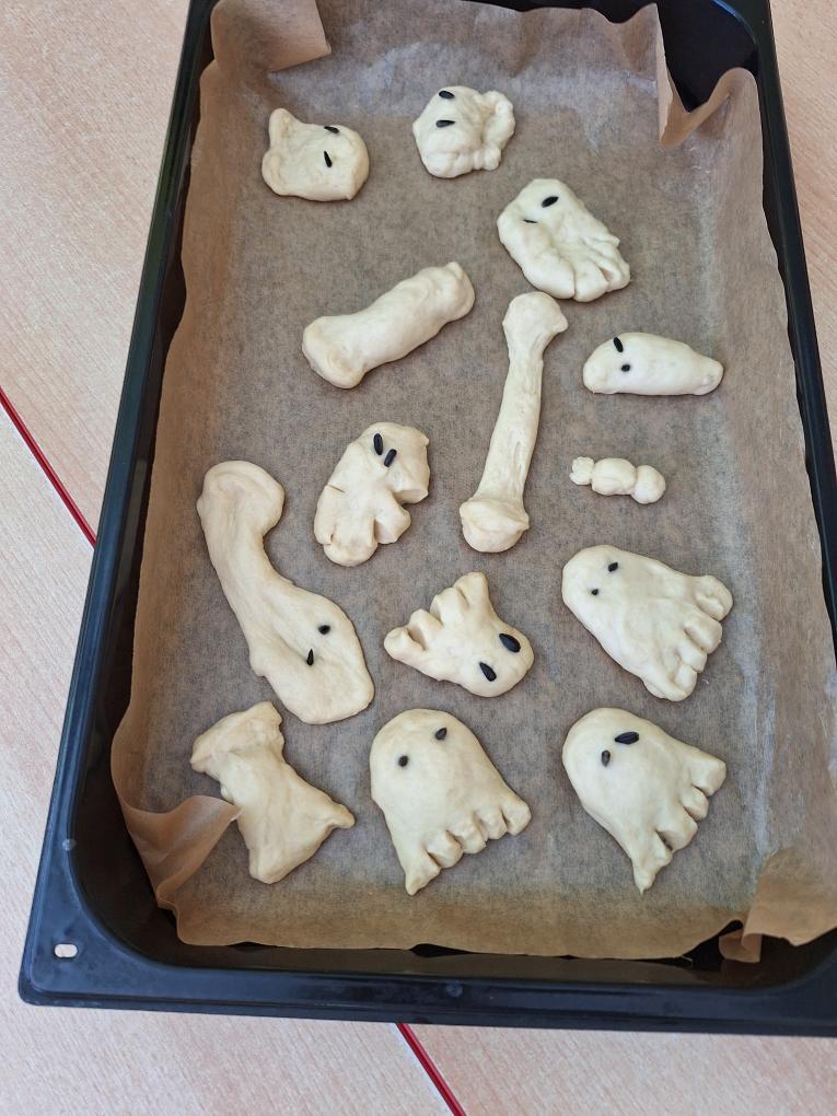 Přišel čas Dušiček, tak jsme si s dětmi připomněli tento den tím, že jsme si upekli "Dušičky z kynuté těsta. Na těsto jsme použili špaldovou mouku a domácí vajíčka. Dětem se Dušičky moc povedly a také chutnaly