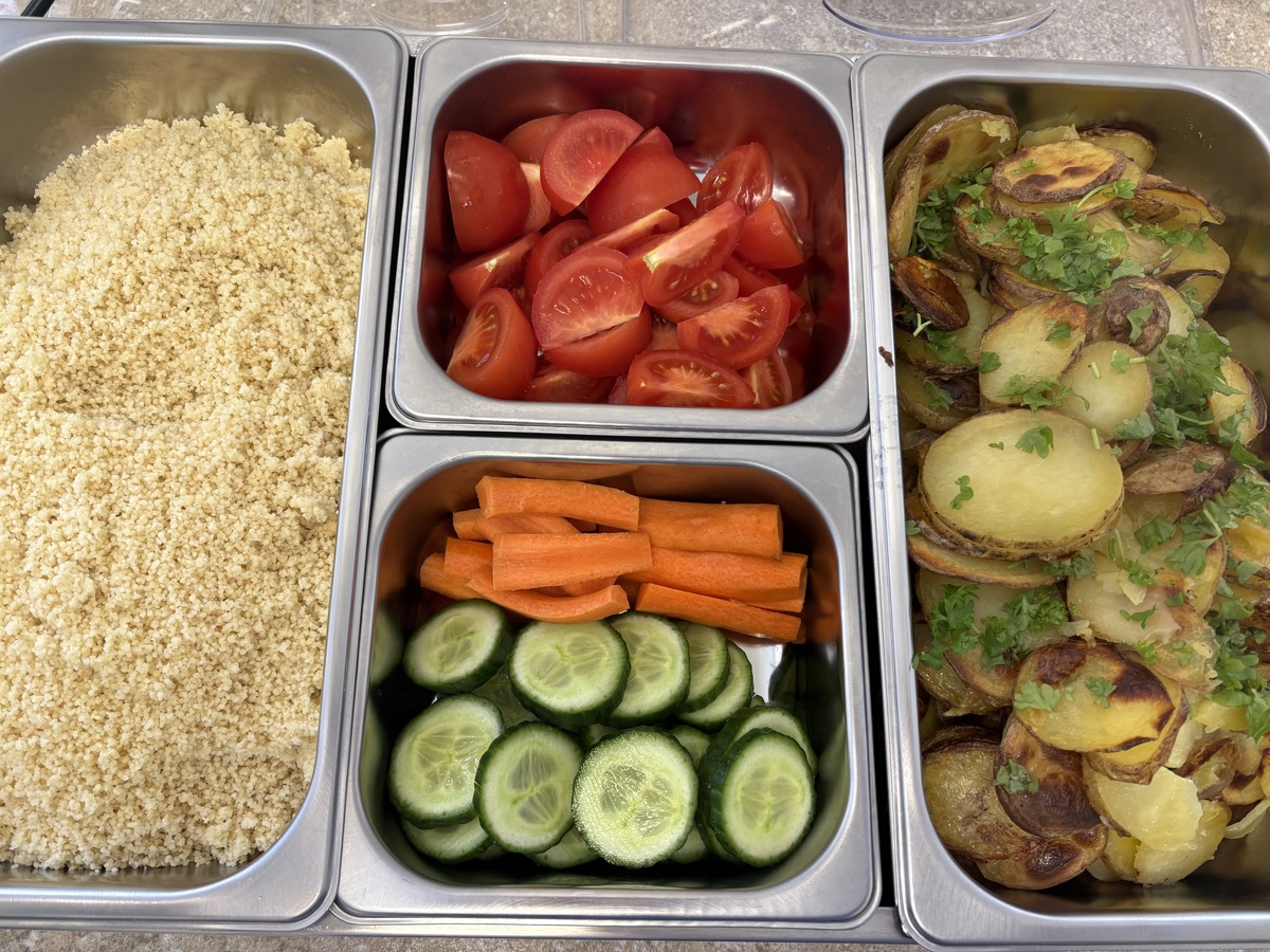 Možnost výběru se nám vyplácí. Plníme nejen spotřební i koš, ale i přání dětí. Uspokojujeme nejen vedoucí školní jídelny, ale i chutě strávníků. Dnes dvě přílohy k rybě. Možnost bramborové dukátky nebo BIO celozrnný kuskus. Samozřejmě ani tentokrát nechybí možnost čerstvé zeleniny.