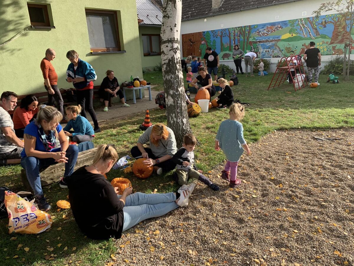 Dýňobraní není akce jen na dlabání dýní, ale i společná ochutnávka výrobků z dýní, které rodiče v hojné míře přinesli. Akce skvěle pojatá, děti si užily stanoviště, jídlo i zábavu:-)