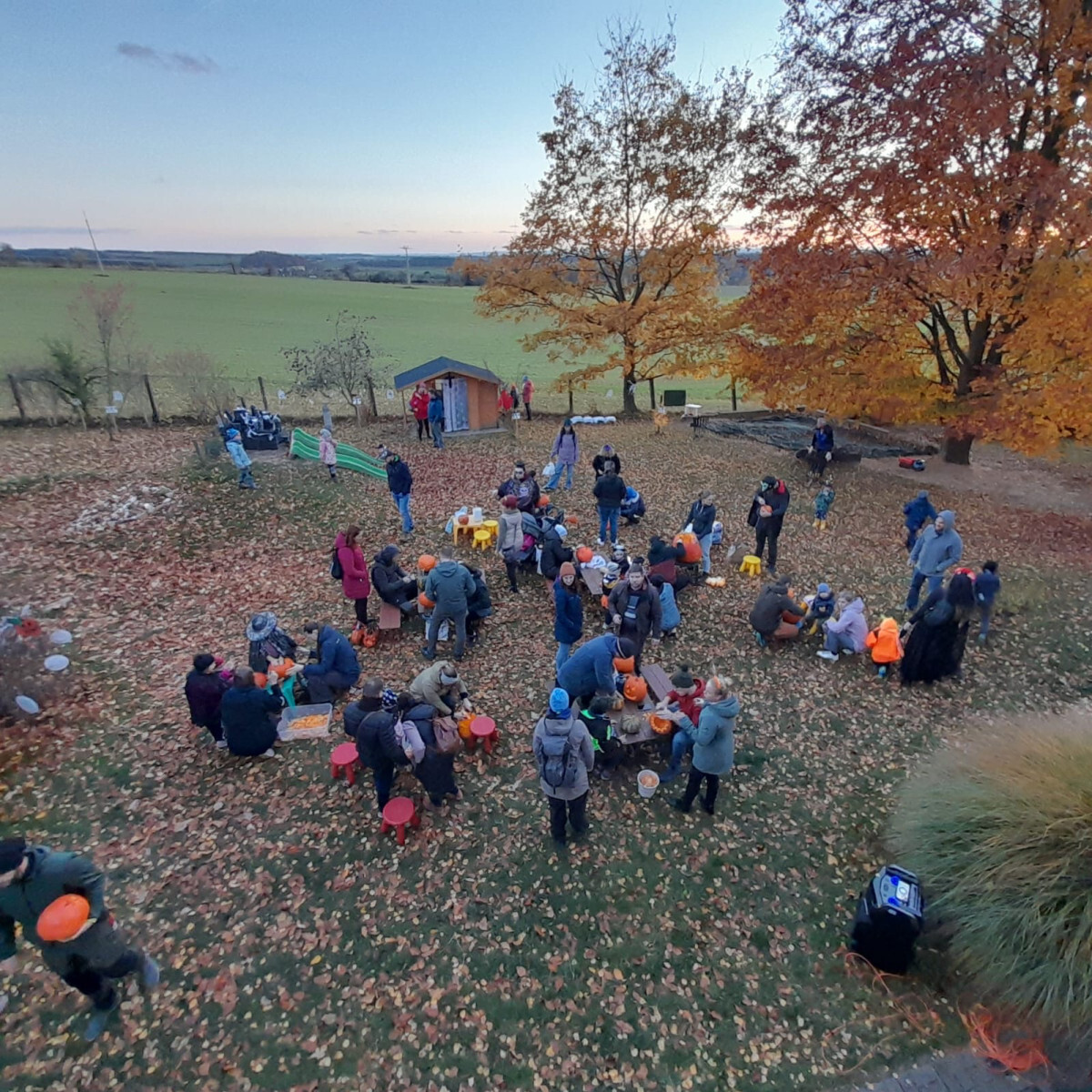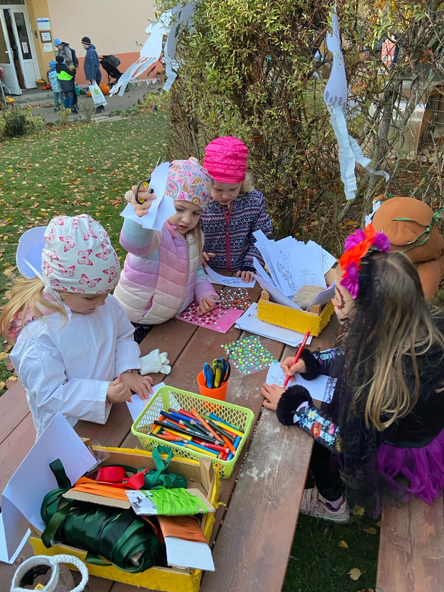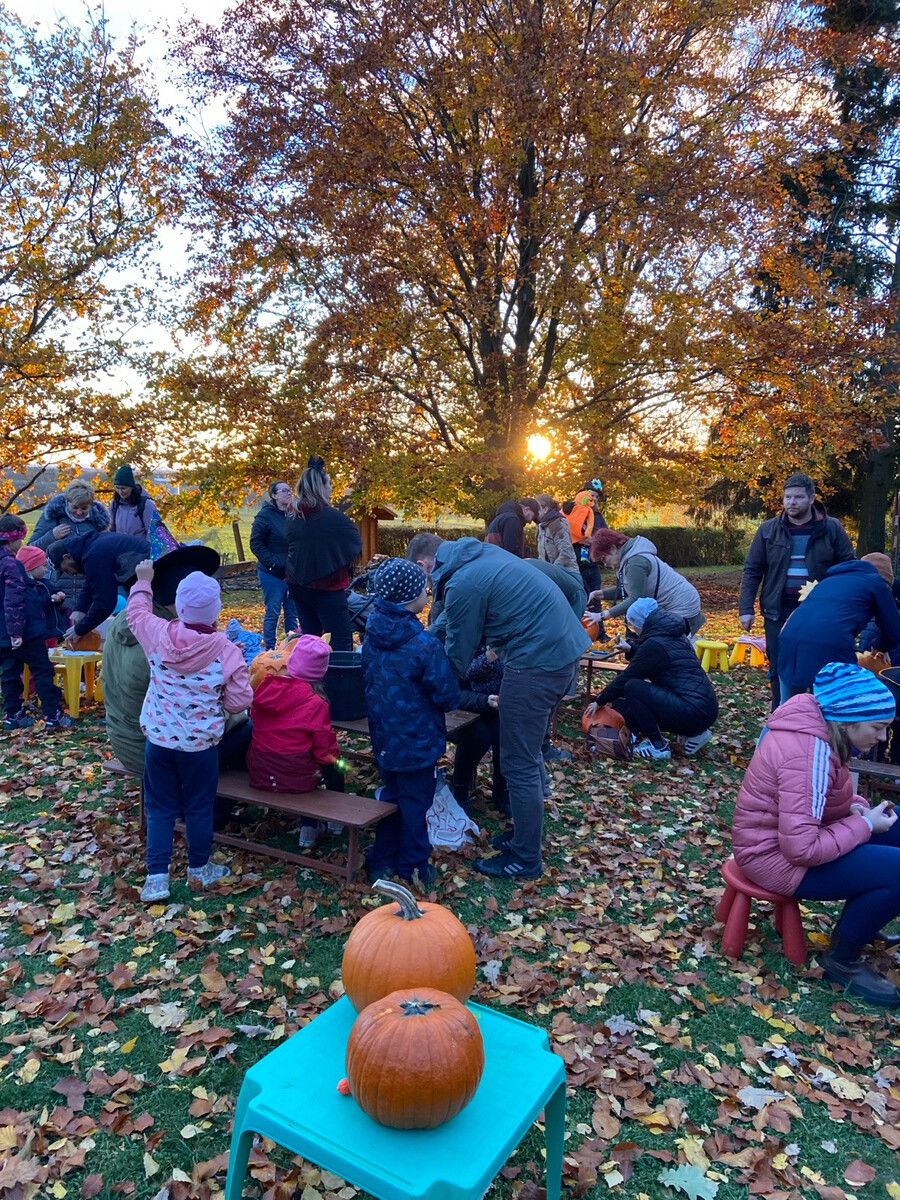 Děti si s rodiči vydlabaly přinesené dýně a vytvořily krásné podzimní dekorace. Proběhl také krátký průvod se světýlky, která si děti doma vyrobily, a byla vyhlášena ta nejpovedenější. Nechyběl fotokoutek, tvořivá dílnička s výrobou čelenek ani závěrečná světelná show se svítícími koulemi, kterou si připravily paní učitelky.