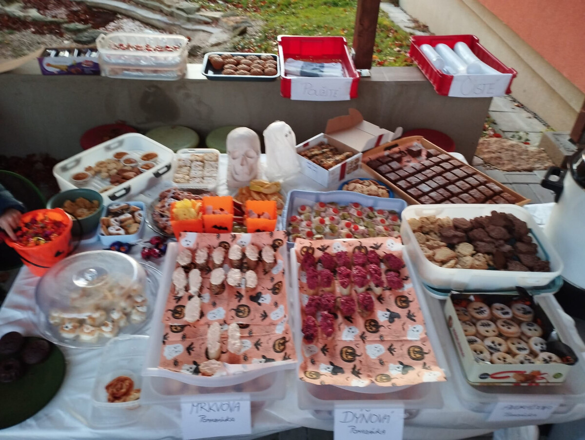 Na přípravě občerstvení se významně podíleli také rodiče, kteří přinesli domácí dobroty připravené ze zdravých surovin. Na stolech se tak objevily nejrůznější pomazánky, pečivo, zeleninové i ovocné pochoutky a další podzimní speciality, které se nesli v duchu Hallouweenu.. Díky jejich ochotě a spolupráci vzniklo pestré, chutné a především zdravé pohoštění, na kterém si všichni s radostí pochutnali.