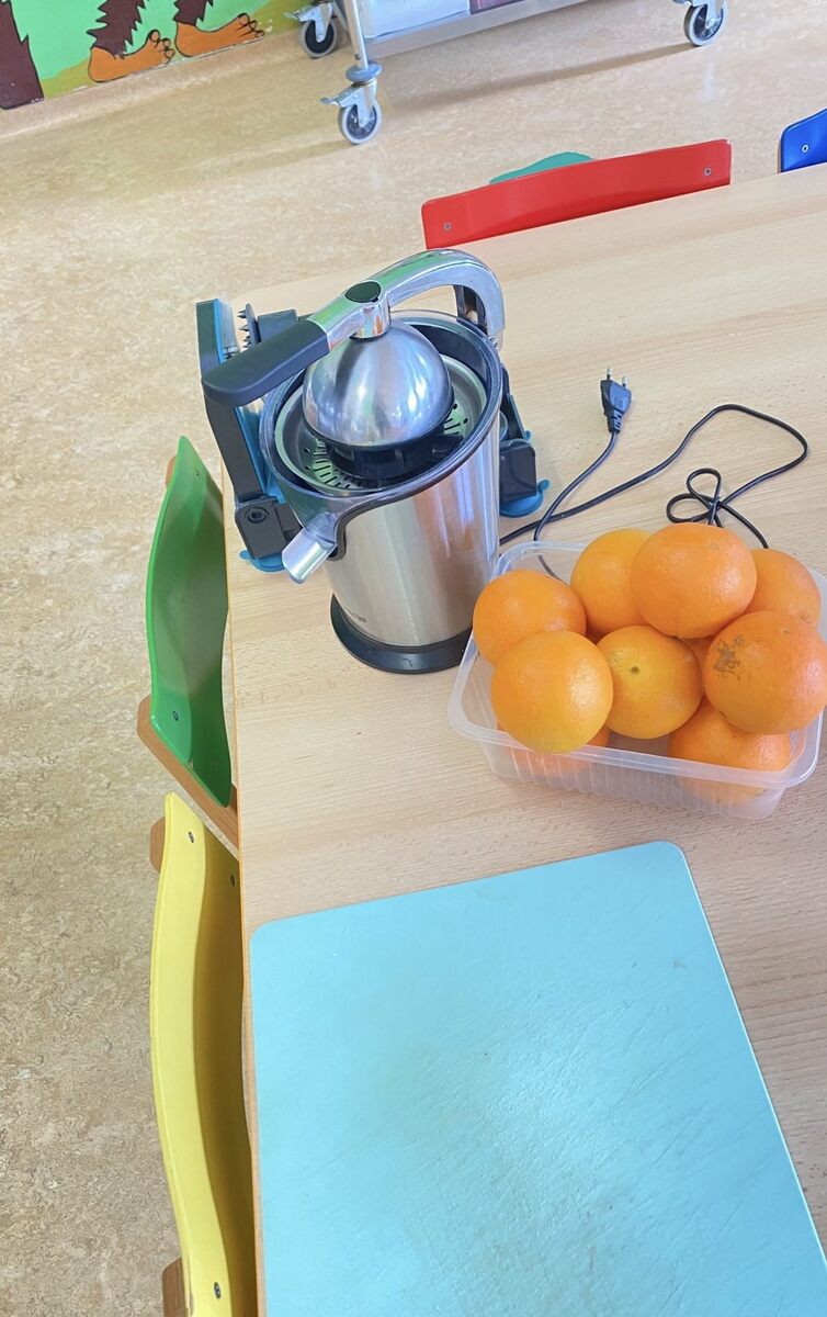 Výroba džusu z citrusů, které si děti přinesly z domova, byla ve školce veselou a voňavou aktivitou. Děti si samy vyzkoušely krájení ovoce i jeho vymačkávání a pozorovaly, jak vzniká čerstvý nápoj. Společně jsme si povídali o tom, odkud citrusy pocházejí a proč jsou zdravé. Džus byl příjemně osvěžující a děti měly radost, že si ho samy připravily. Aktivita podpořila nejen spolupráci, ale i vztah ke zdravému stravování.